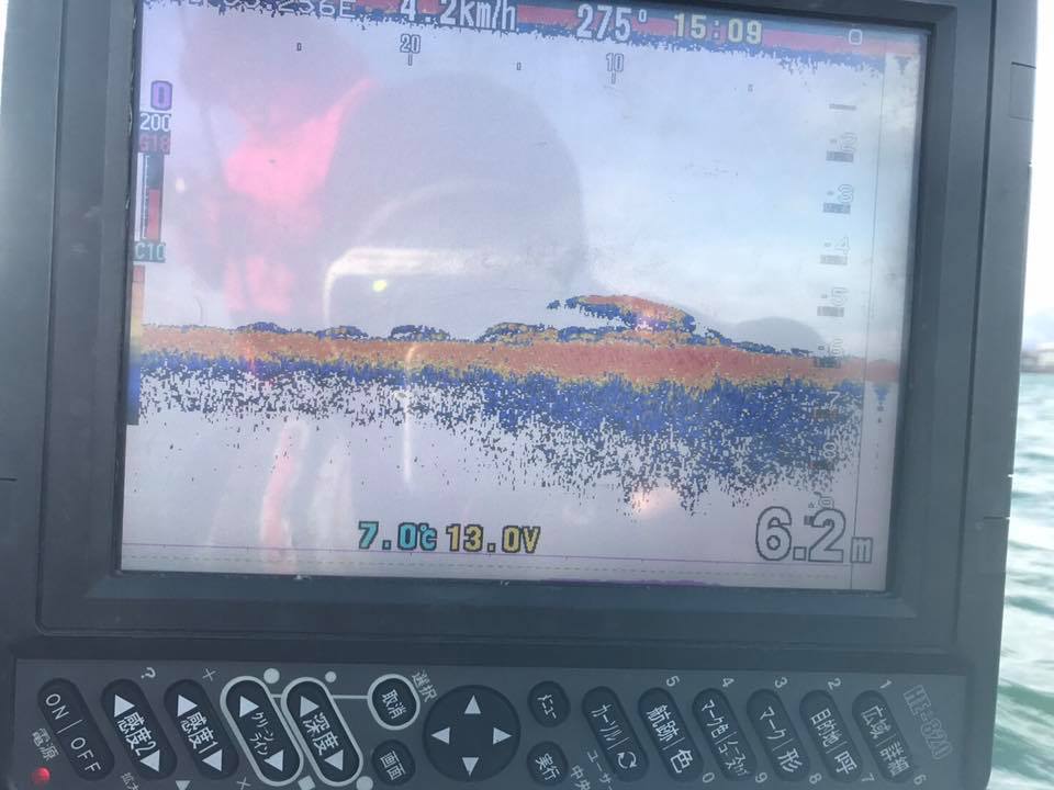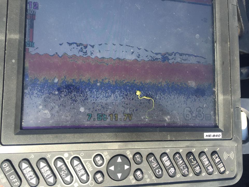 魚群を探して、フロントの魚探下に映し。。。。