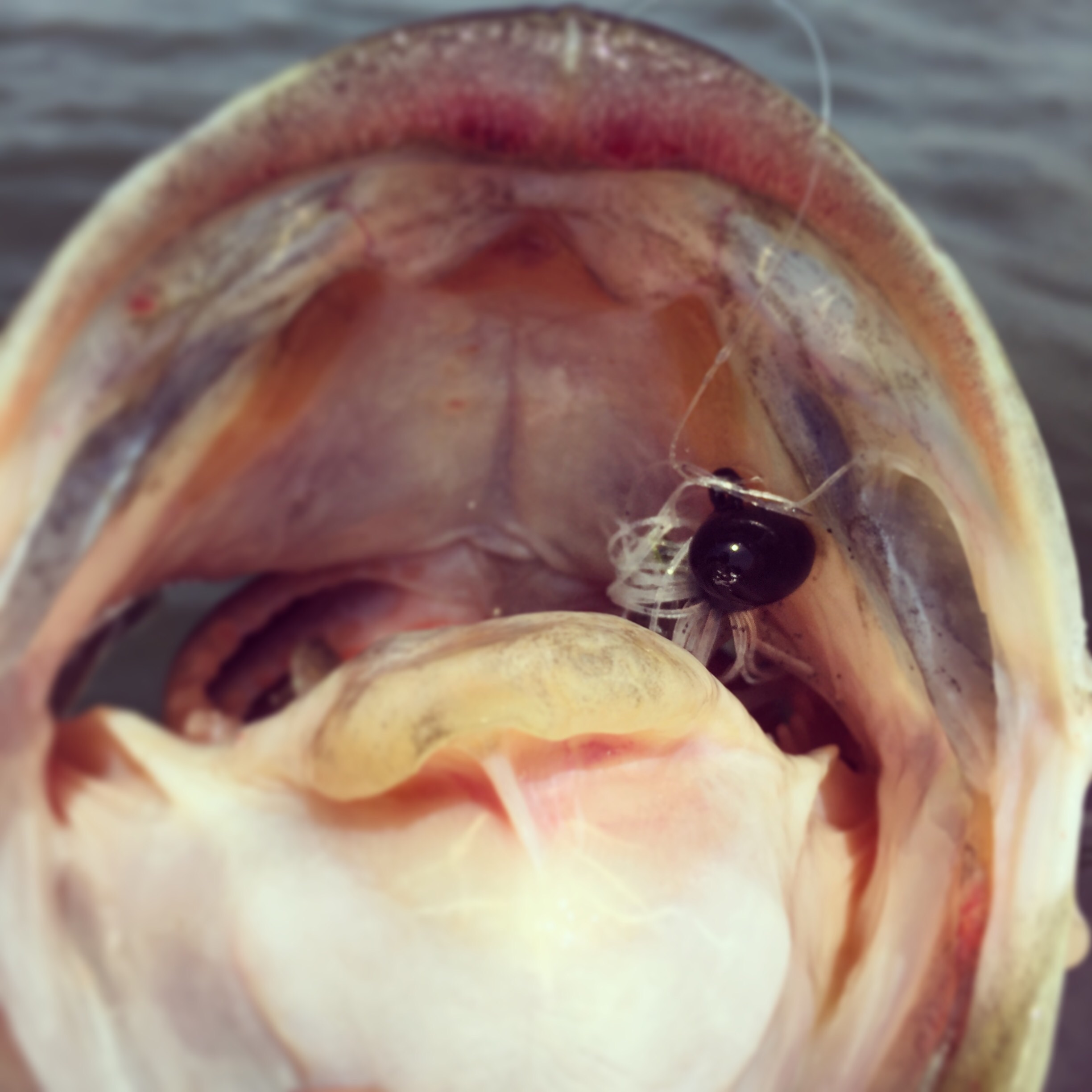 ロッドが止まるほどのバイトでしたが、、、デカバスの口は固かったか、、一瞬乗って惜しくもバレ!