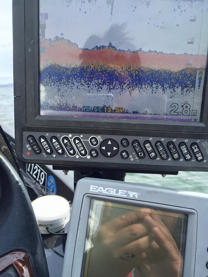 魚探にもワラワラと魚の映像が!! 「釣れそうですね~。。。」と話していると、、