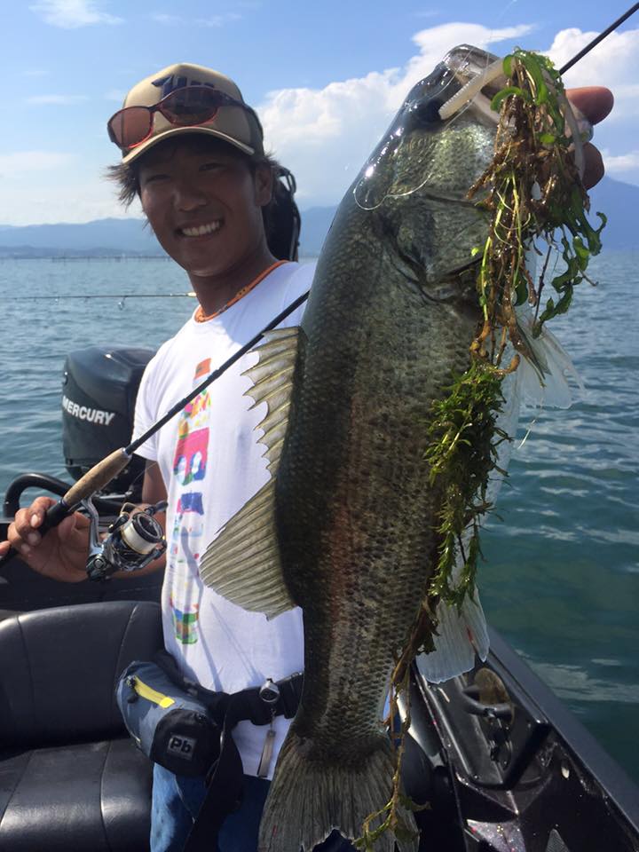 4~5ⅿあたりの深いウィードエッジをやっているので、基本はいくらかオモリのついたライトリグが良い感じでした。