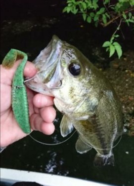 同様の釣り方でモジモジしながら探って待望のバス!