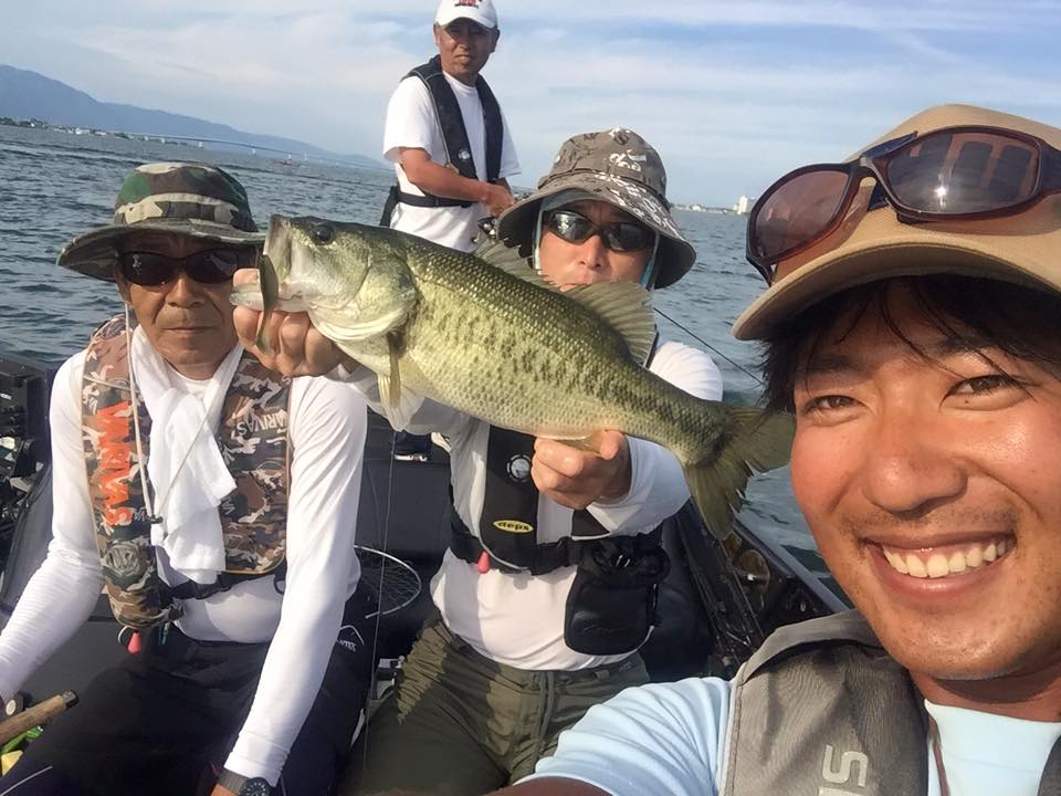 9月1日はガイドで、八田さん、竹久さん、中岡さんを迎えて湖上!