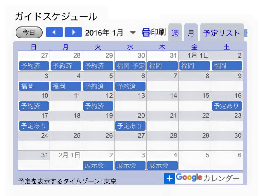 ※ 空白が予約可能日になっております。