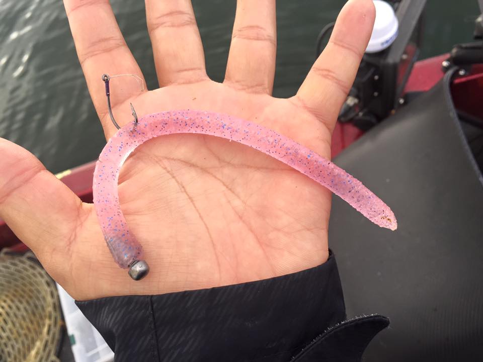 3/8ozではなく、1/2ozの少し重めのジグにしてもらい、こちらも風上に投げてドラッギング気味にトントンしていってもらいます。