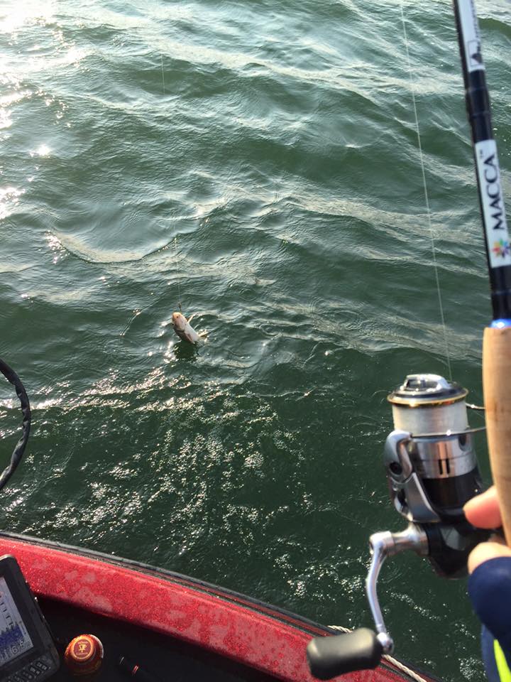 5mラインのウィードのほぼ無いエリアをEGプロフェッショナルフットボールジグ3/8ozとスタッガーオリジナル3インチでトントントン。