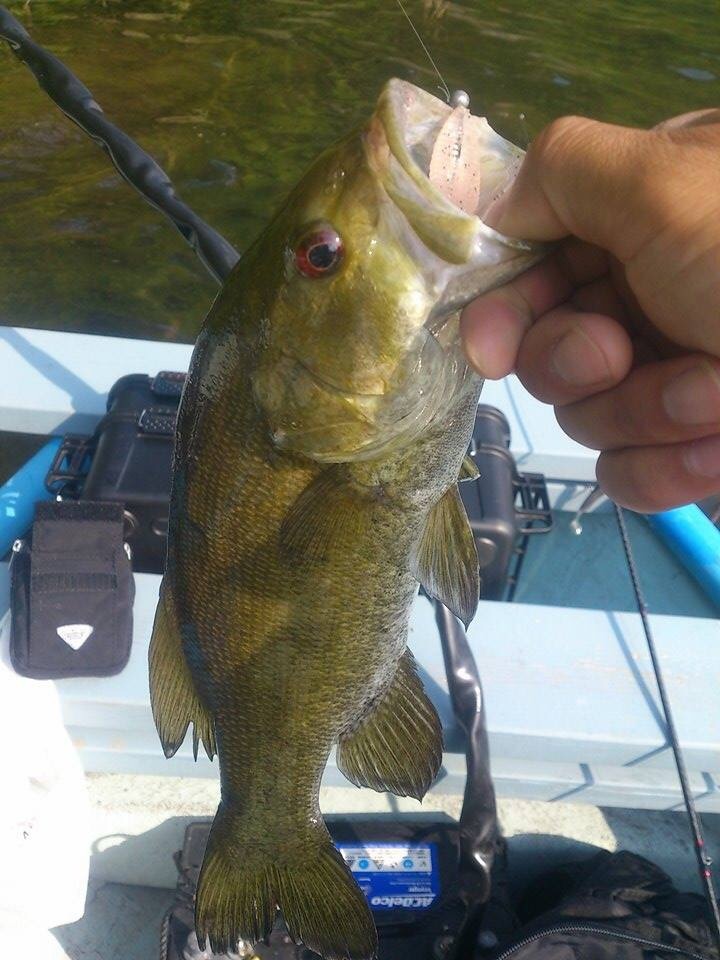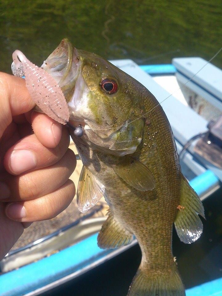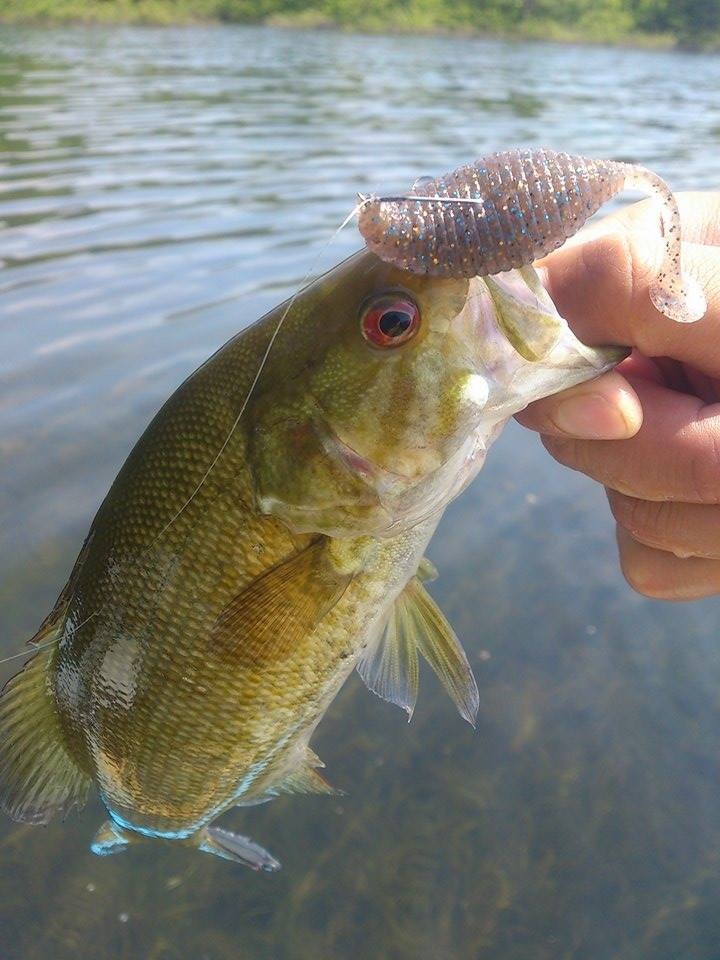 スタッガーワイド2インチはスモールマウスバスでもストレス無く捕食出来る大きさです。