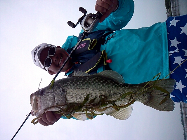 前回、雨パワーか?!と確信が持てなかった沖パターンを今回の厳しさMAX状況下でパトロール…湖流&ベイトが絡むポイントをワイドヘビダン、ツチノコで…