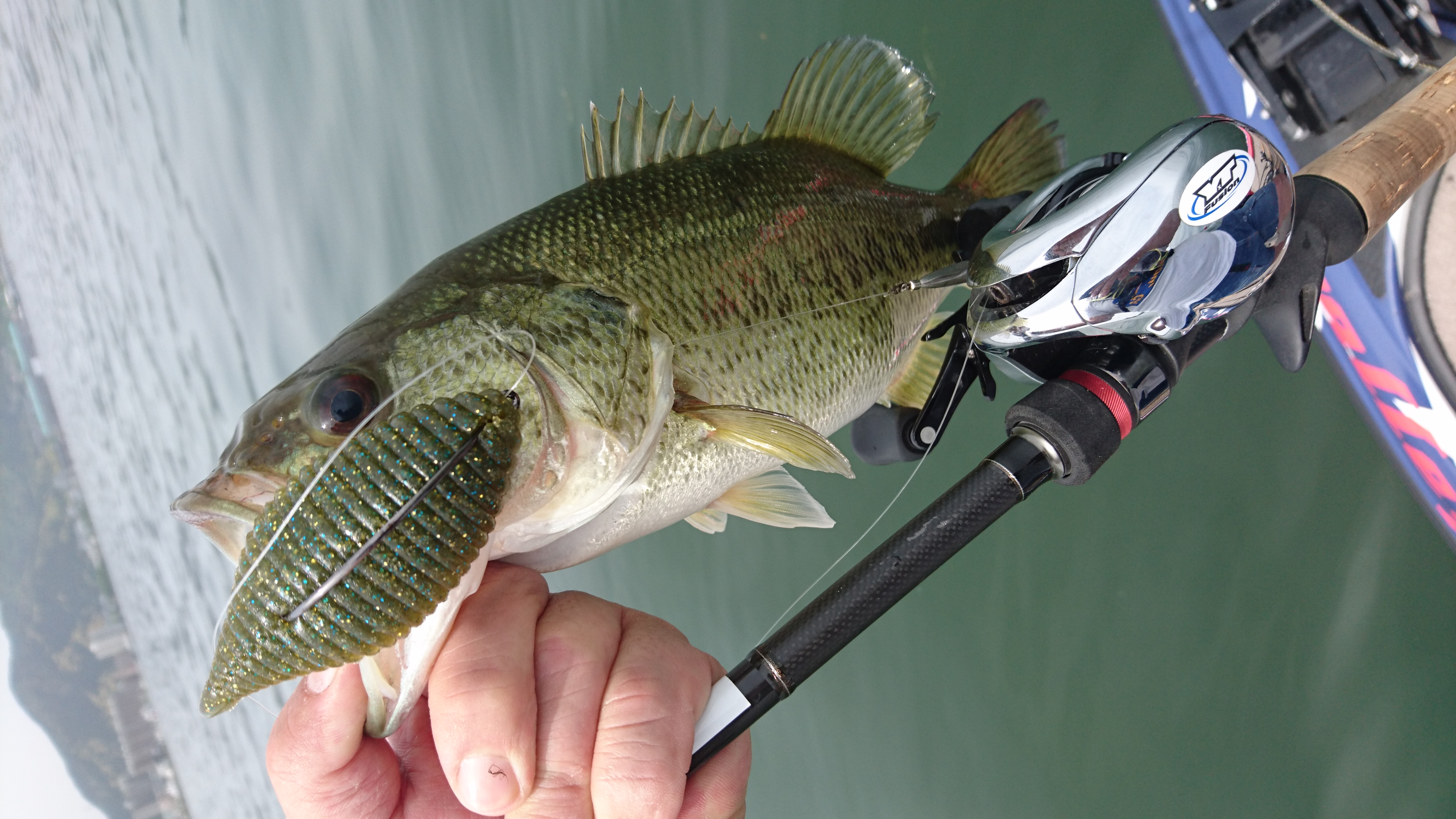 ウィードフラット(今はササバモがあるところを狙ってます)にスライドフォールジグ5g&7gにワイド4インチをセットしたリグを投げるだけ!!