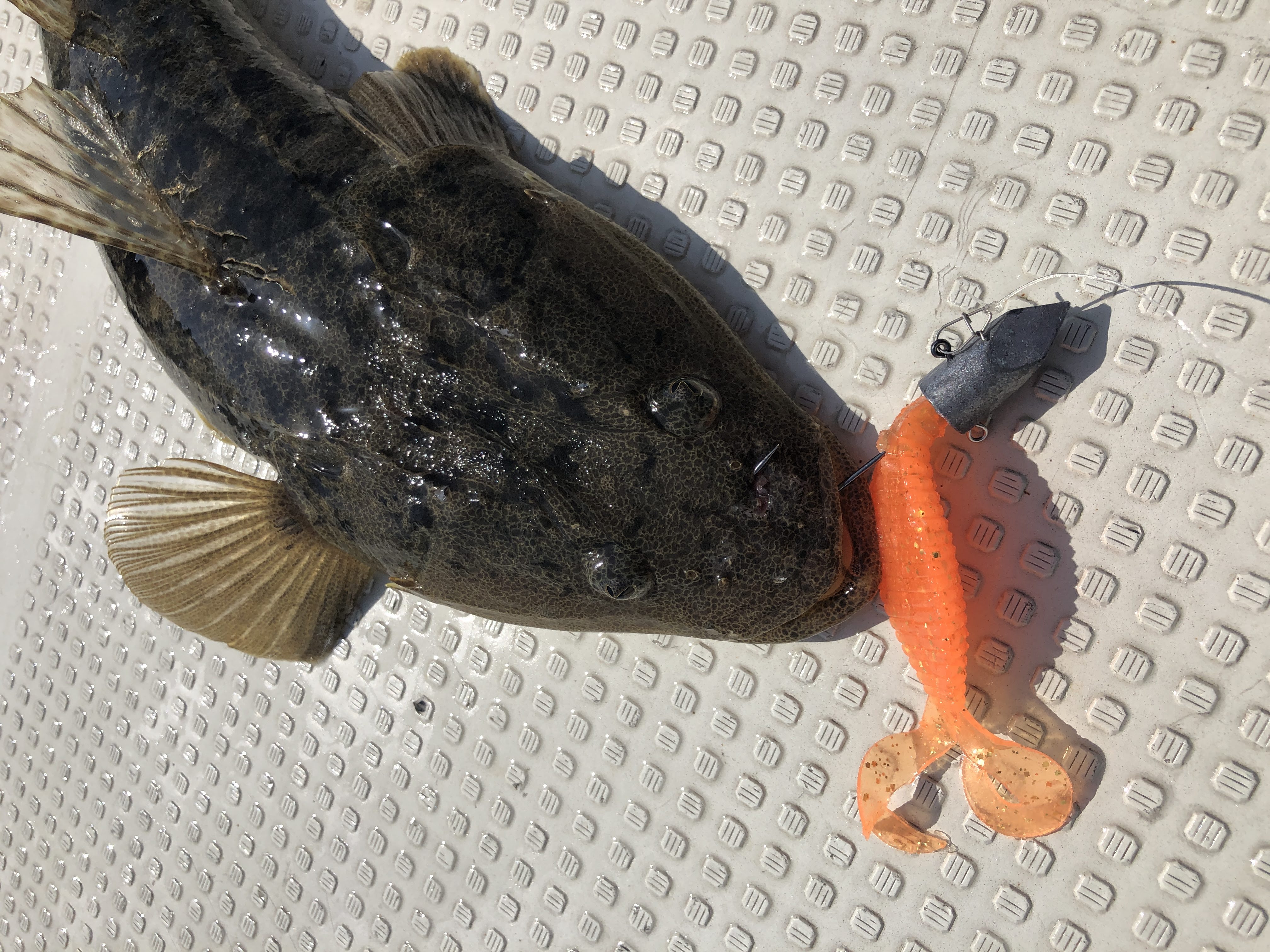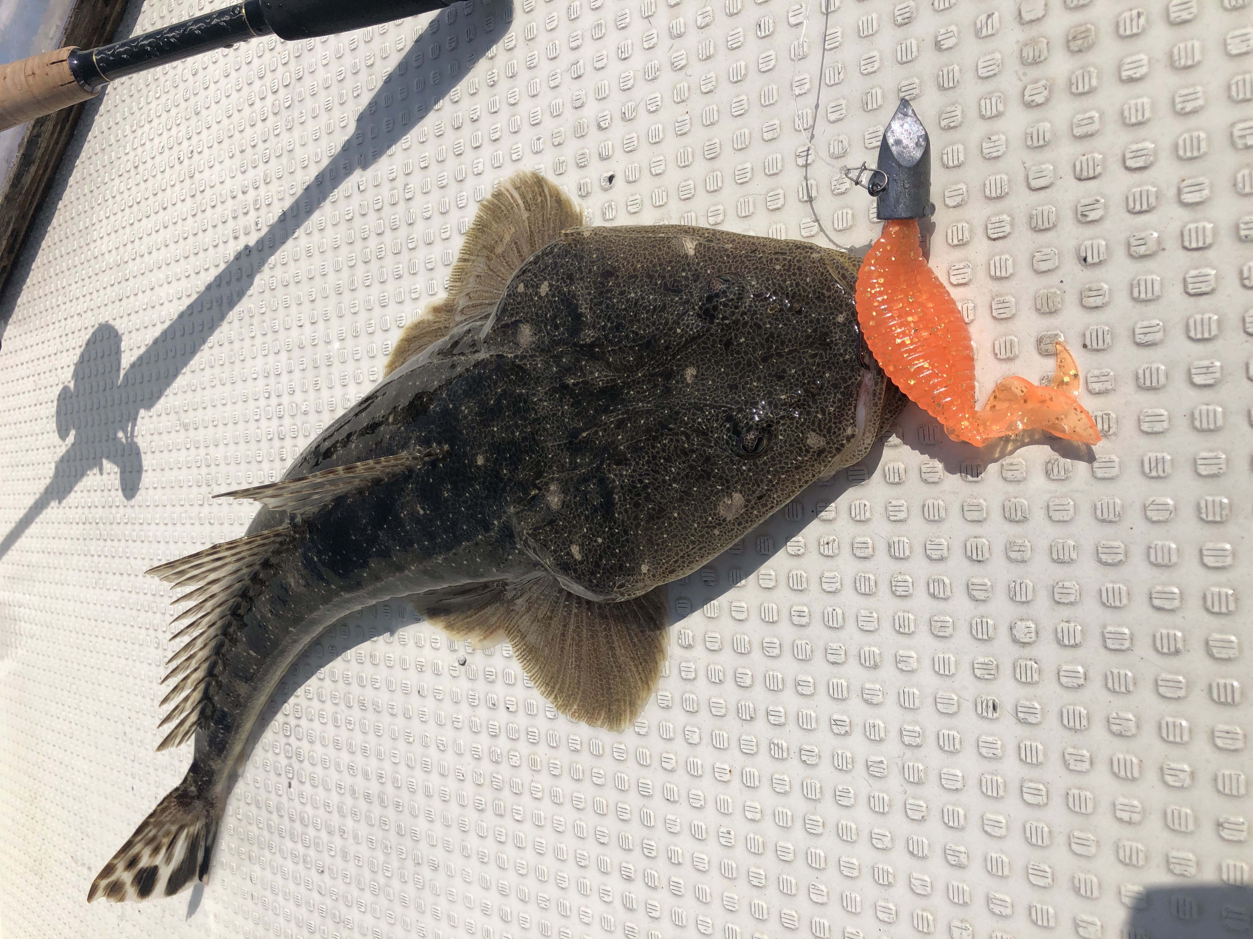 このようにアタリカラーがはっきりしすぎる日もあるのがマゴチ釣りの特徴です!マゴチ釣りといえばオレンジと赤みたいな印象があると思いますが、1年通してみるとグリーンやブラウンベースの地味系カラーの方がむしろ出番が多い気がします。ですので、固定概念にとらわれず、いろいろなカラーのワームをご用意していただくことをおススメします!
