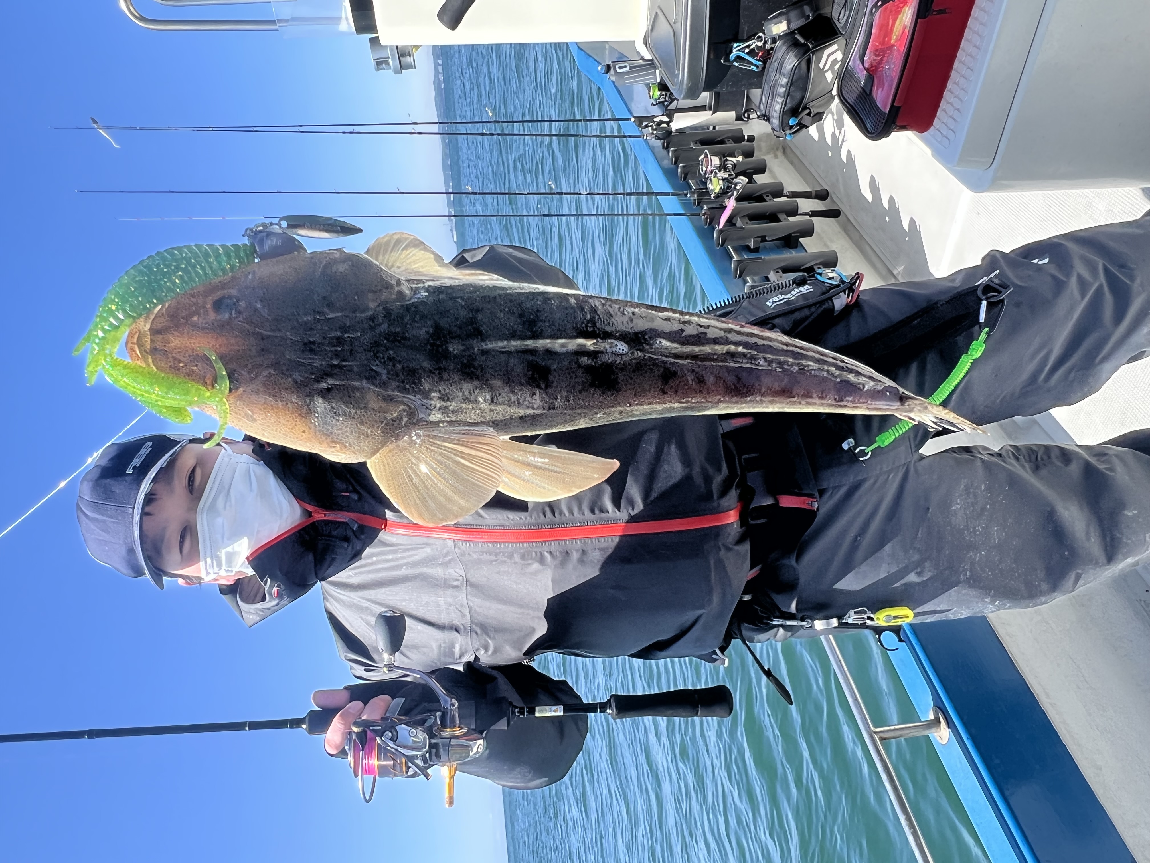 狙う水深は15〜18mくらい。ジグヘッドは40gを使用します。これは乗合船あるあるですが、ほとんどの東京湾の乗合船はエサ釣りと同船です。なのでルアーで狙う場合の多くはミヨシ(船首)で釣りをすることになります。