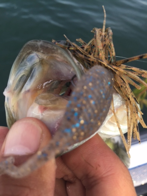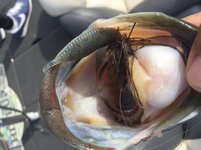 ネコリグとジグヘッドはどちらも釣れますがネコリグの方が反応がいい!ボトム付近でフワフワするとバイトが出る。