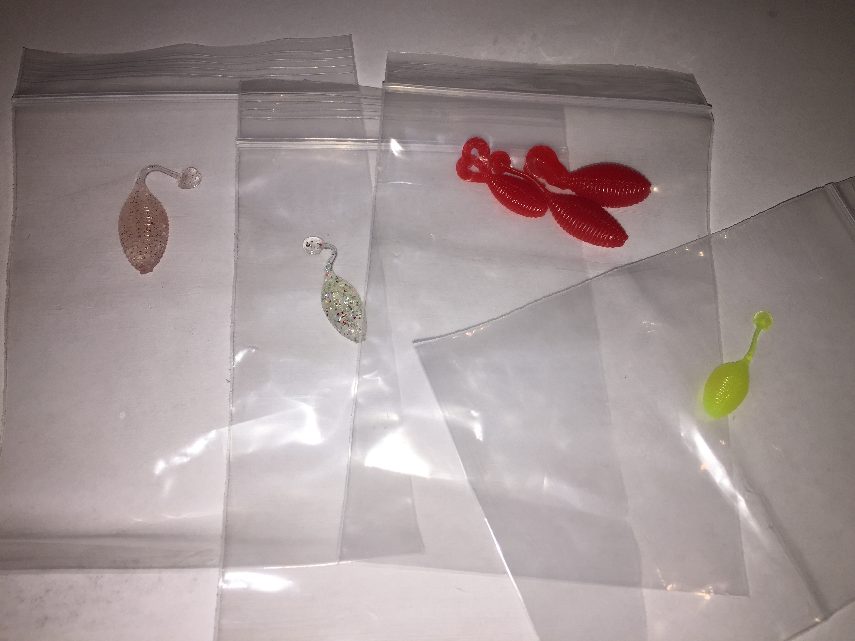 ボンレスシャッド(写真右)のようなカラーも他にあまり見られないカラーです。