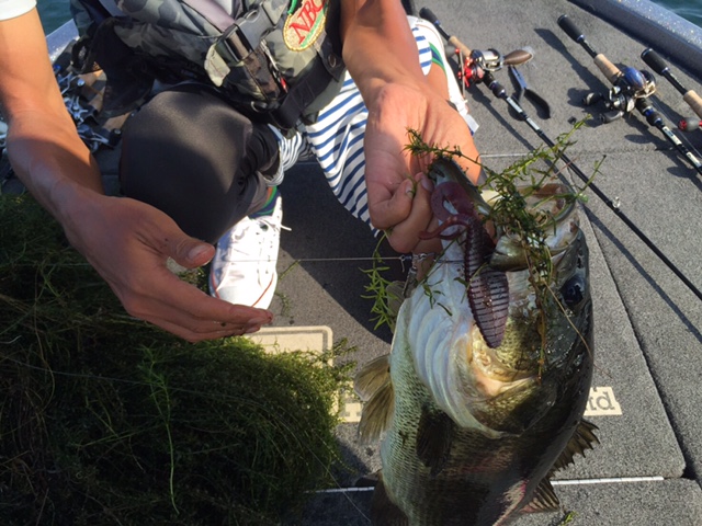 今の時期、特に琵琶湖では水面直下までウィードが伸びます。