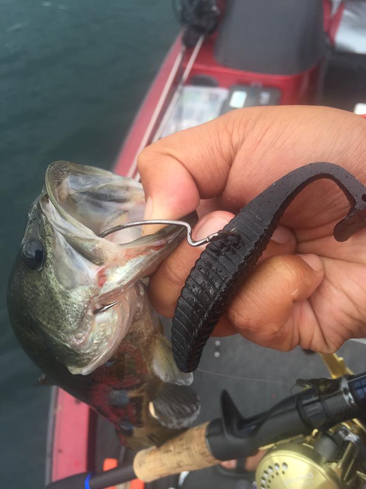 フェザーフックは抵抗となってバスが喰いきらない時や移動距離をさらに少なく1点で誘う時に有効です。