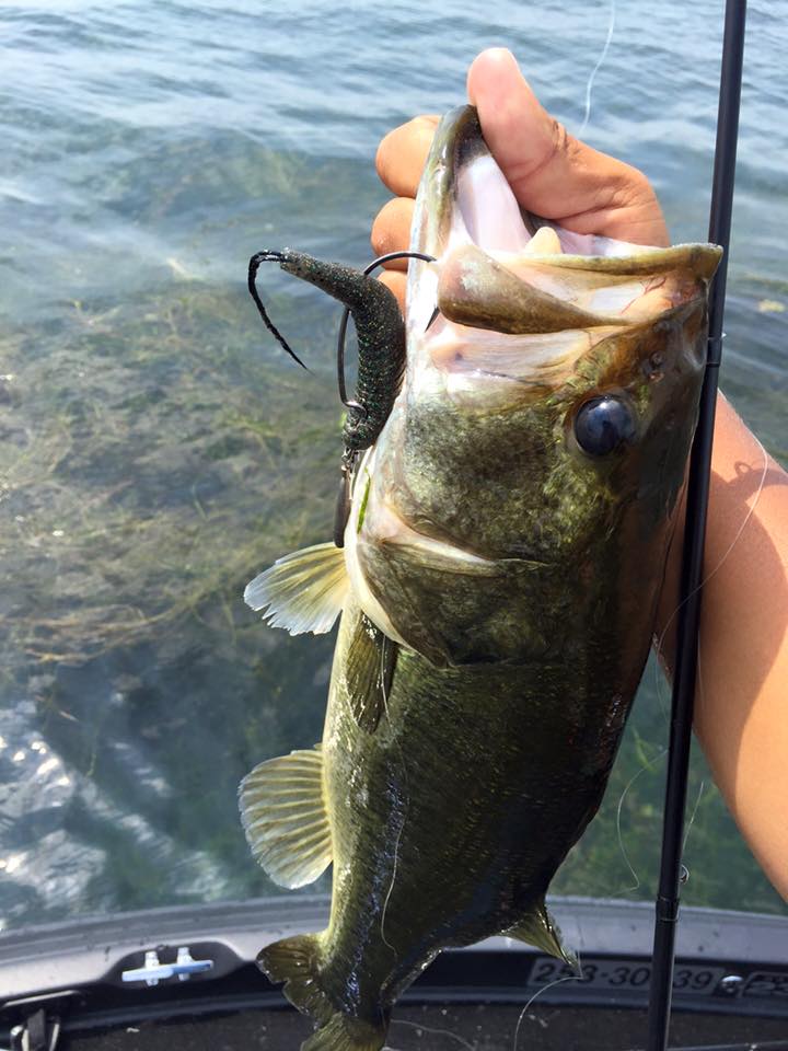 7月24日ガイド。52㎝頭に12本程。ウィードの上!ライトテキサス&ワイドツインテール!