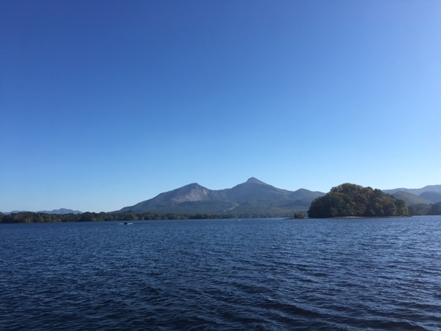 秋晴れの桧原湖、磐梯山が素敵です。