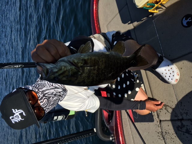 その後はすこし船中放心状態で、またスタッガーとスピナーベイトで流しながら湖を一周してランチタイム。