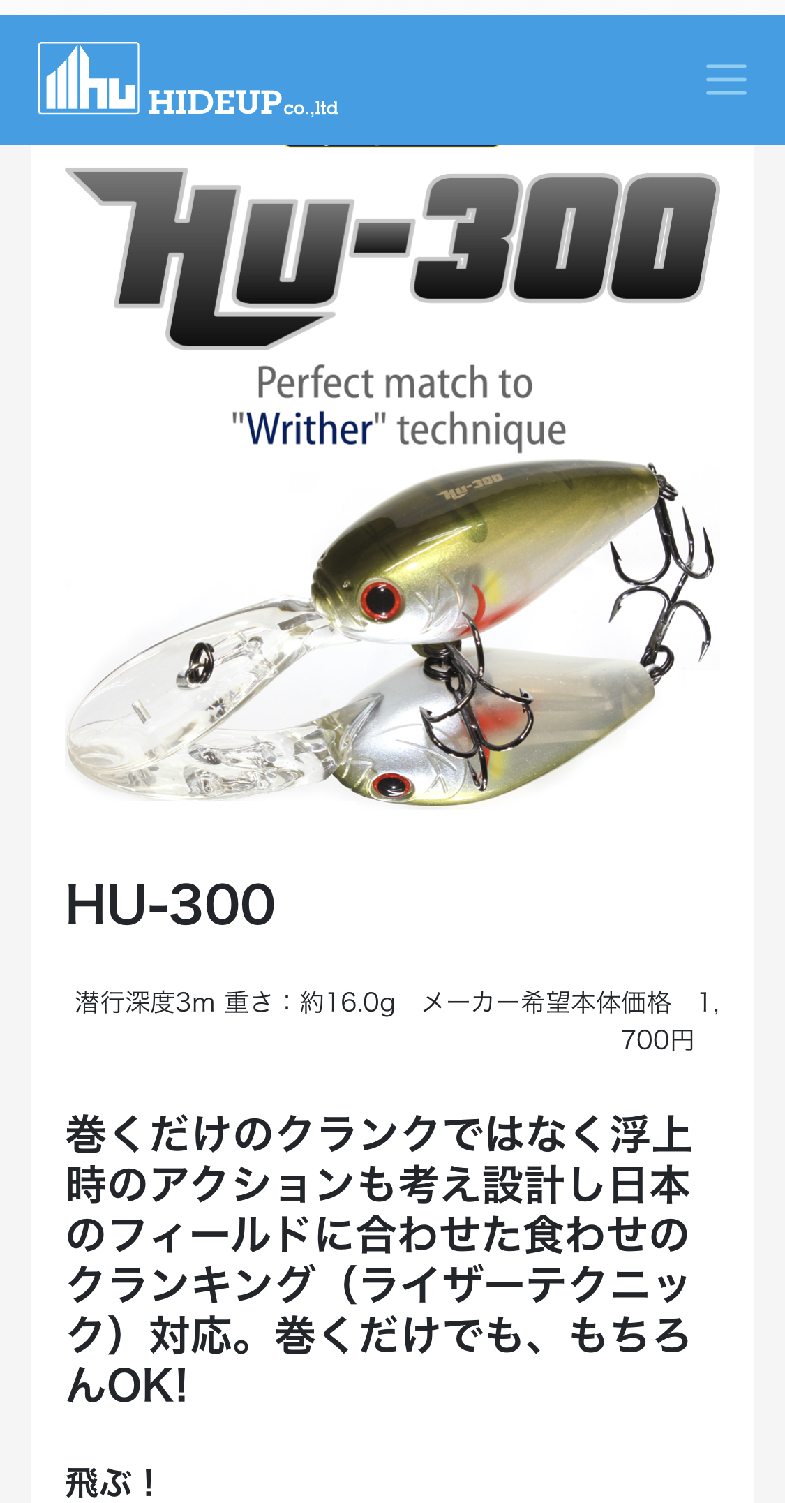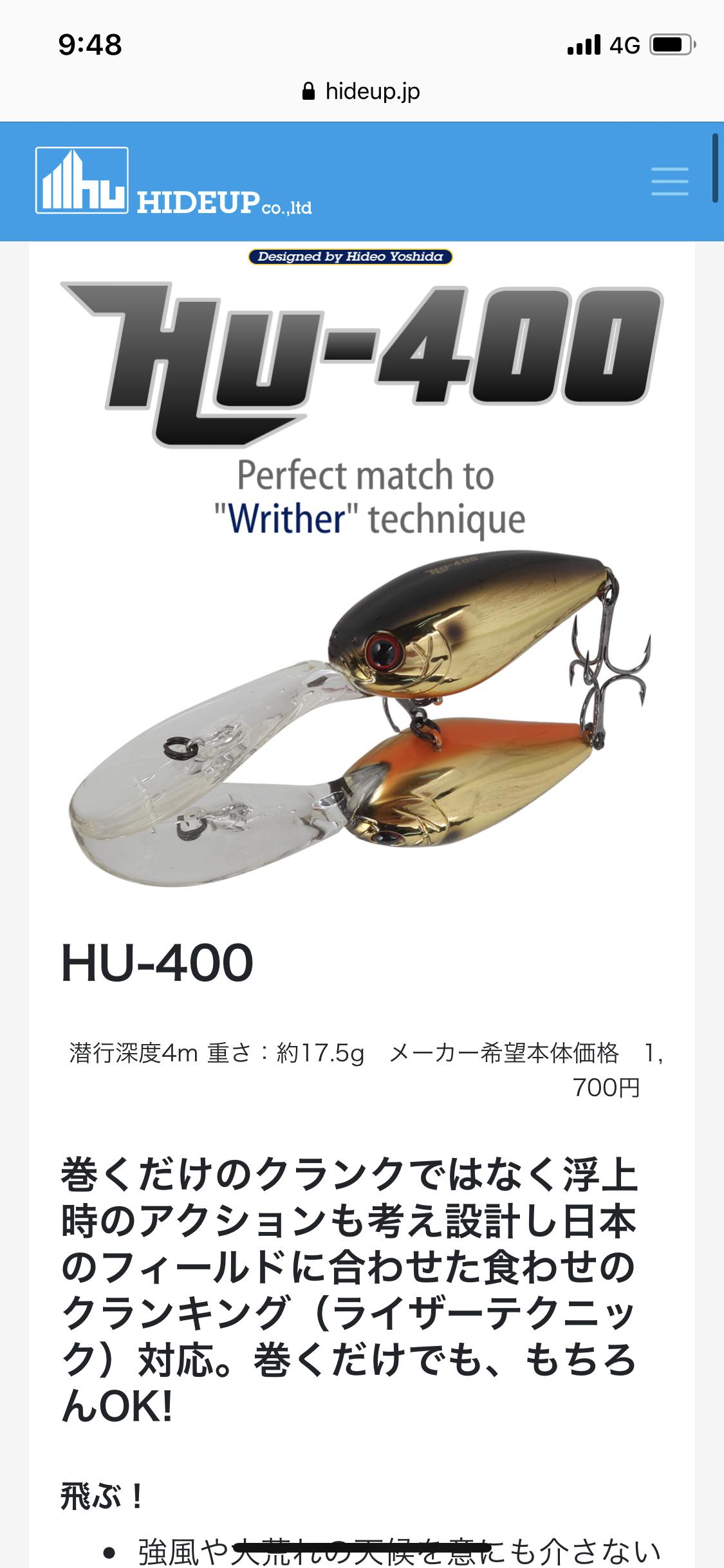 そして、もっとゆっくり引きたい時や、HU-300で届かないもっと深い場所をHU-400で攻撃します!