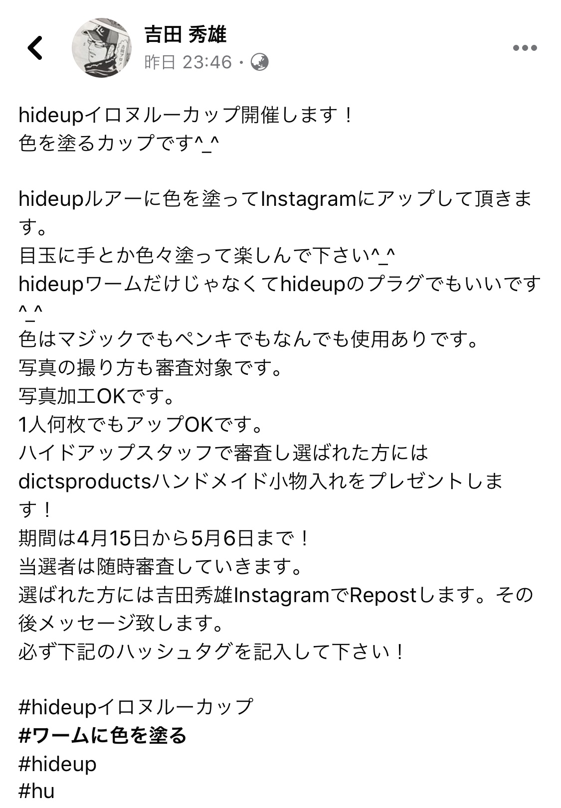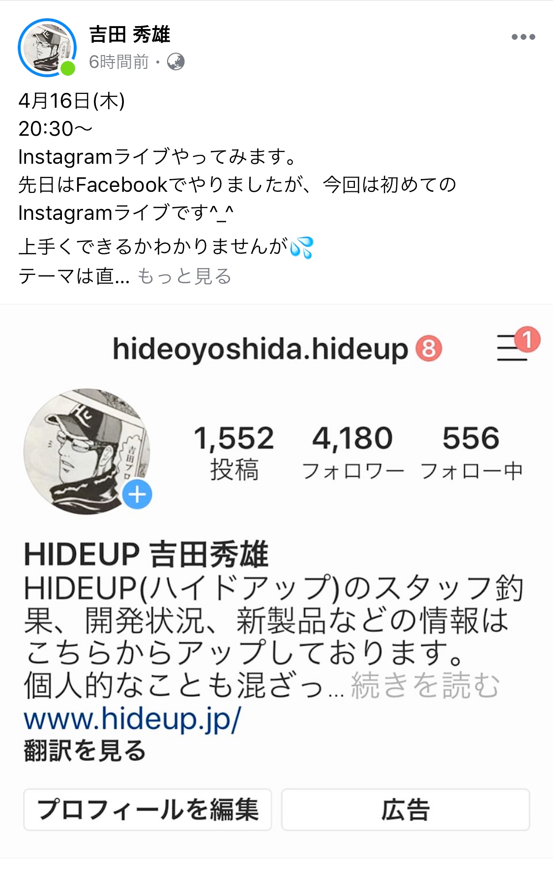 是非、今夜の吉田秀雄Instagramライブ配信をご期待下さい!