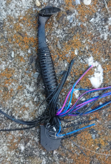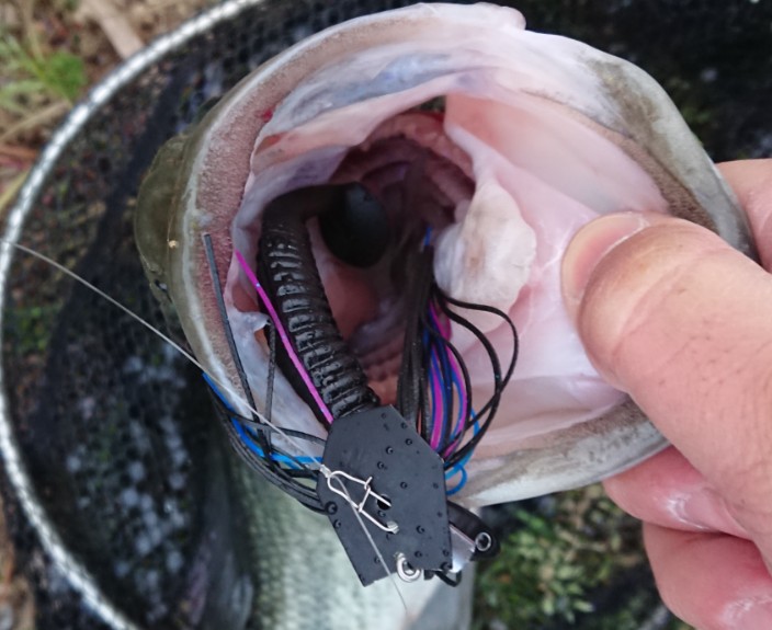 シャローからブレイクの上20~30cmくらいをテロテロ引いてのバイトでした。
