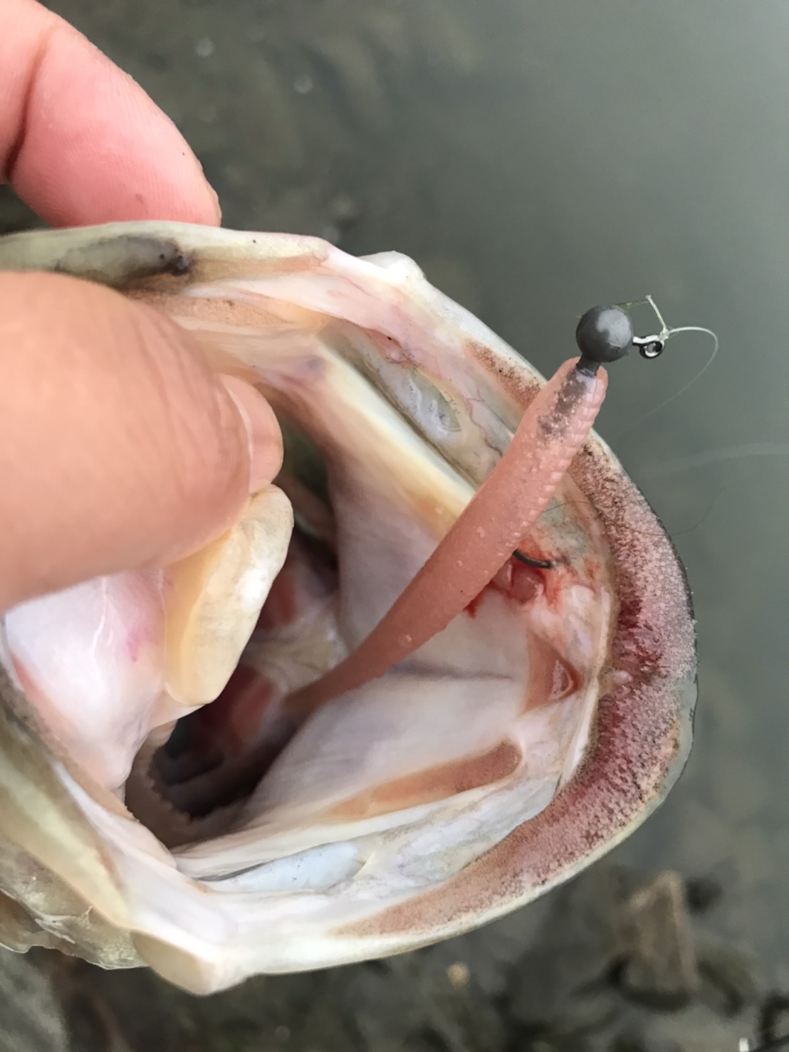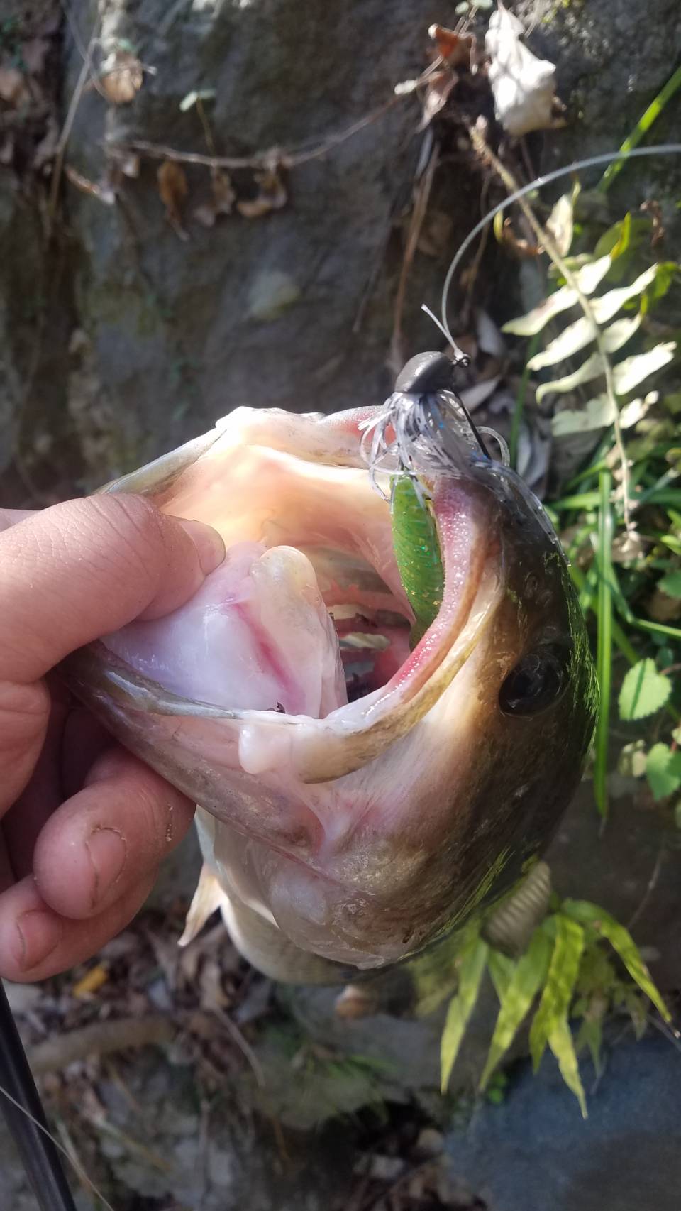 スライドフォールジグ2.7gにスタッガーワイドホグ2.7inchの組み合わせでキャッチ✨