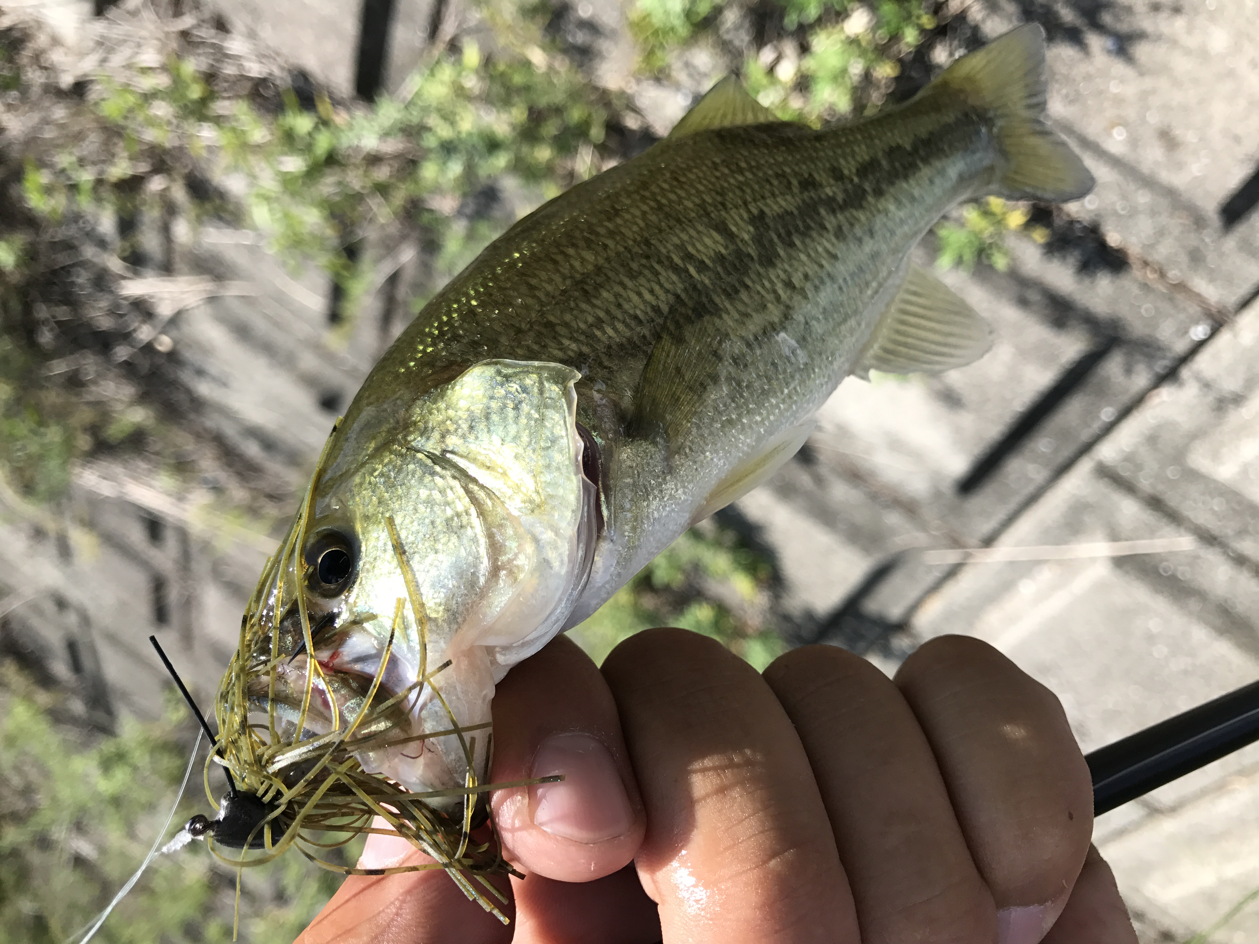 ステイ時間を2分程に長めにとりバイトが無ければ少し竿をあおってヘビダンを転がし、またステイ!
