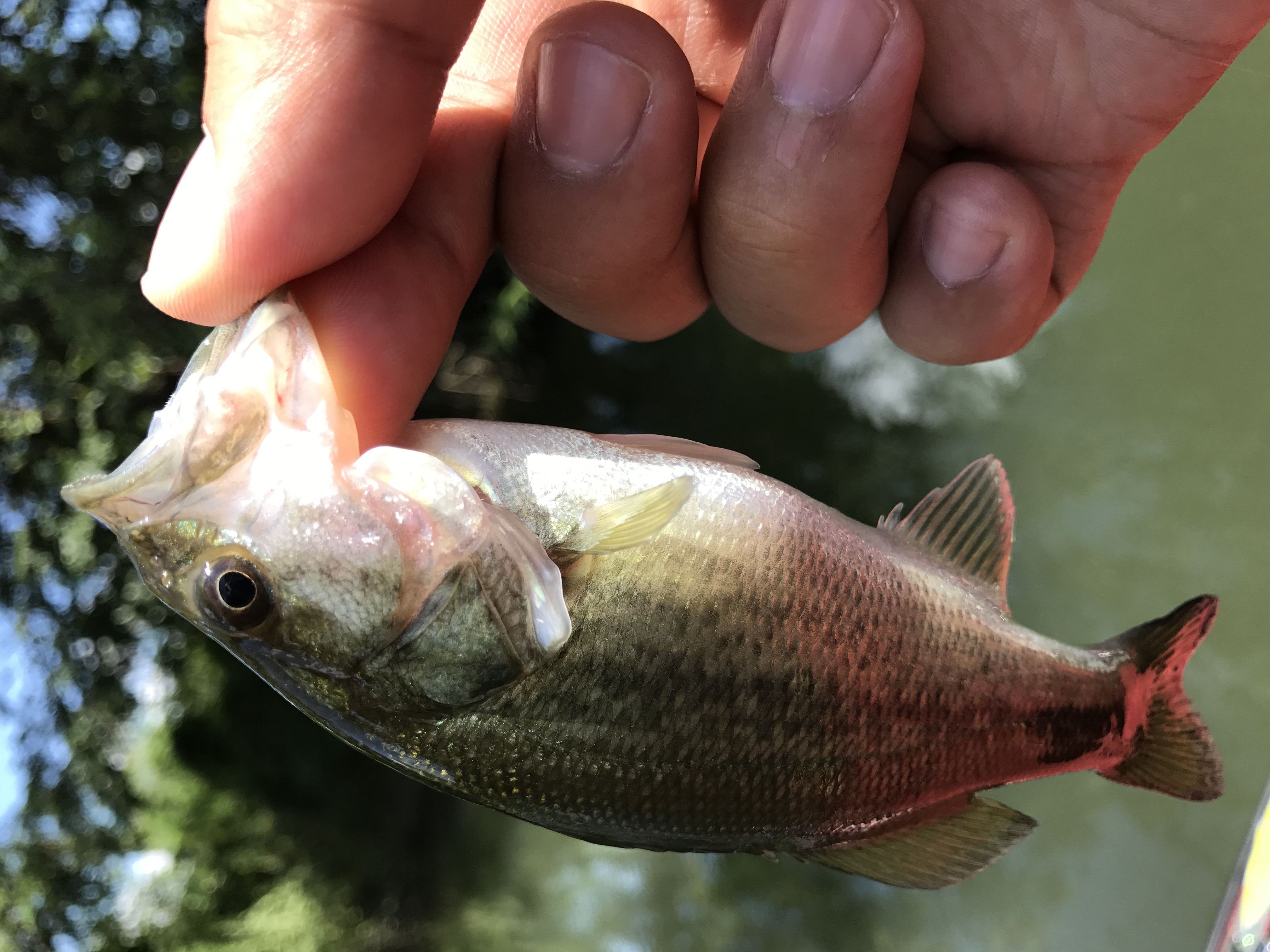 前日のプラクティスで最上流で少し釣りをした時に、シーズン的にも最上流にはバスはいる!と思い色々なルアーで試してみるもキャストしたルアーはすぐに流れに負けて流されてします。。
