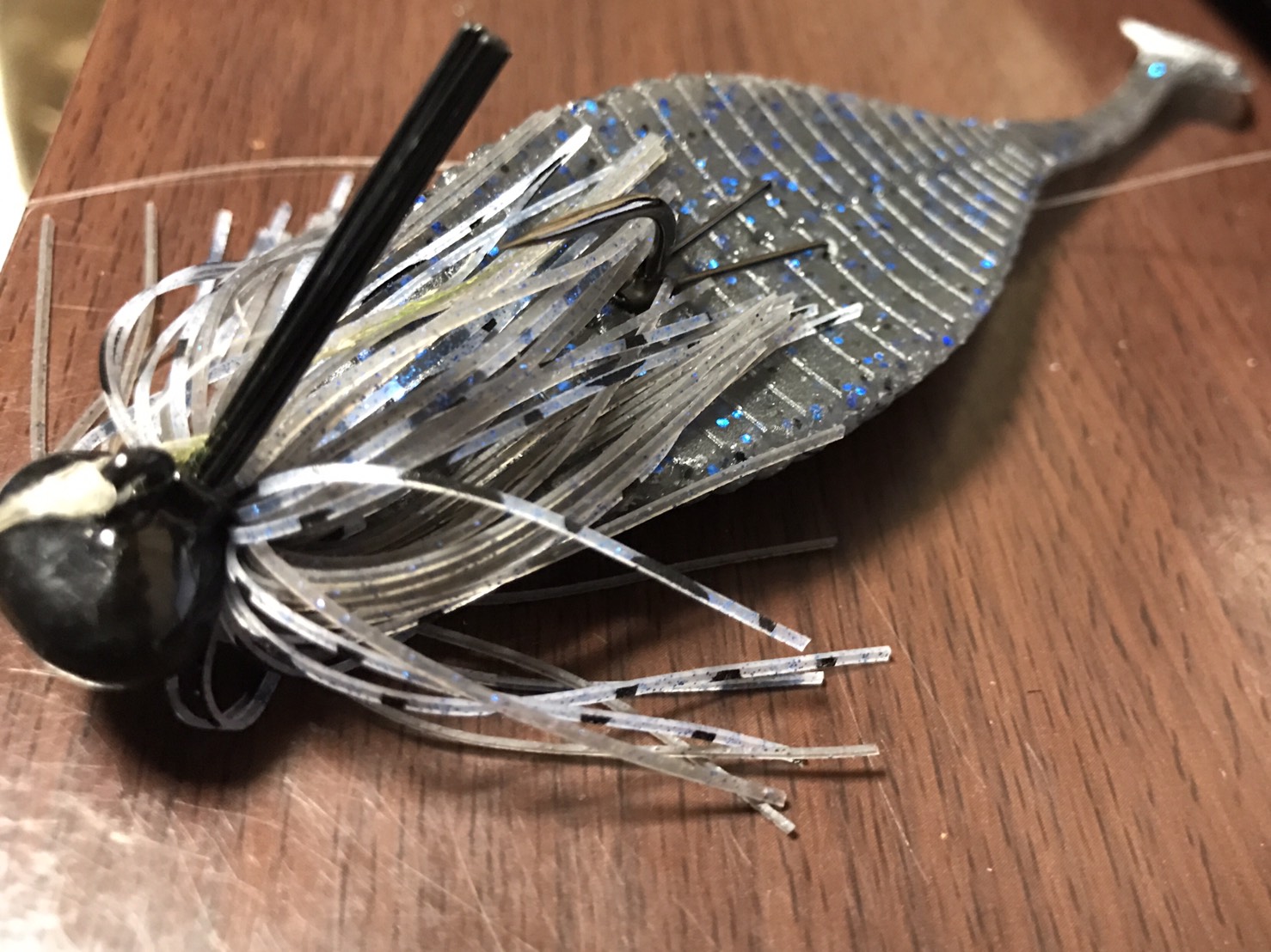 このフットボールジグはヘッド形状が少し尖っていて水の抵抗を受けにくく、