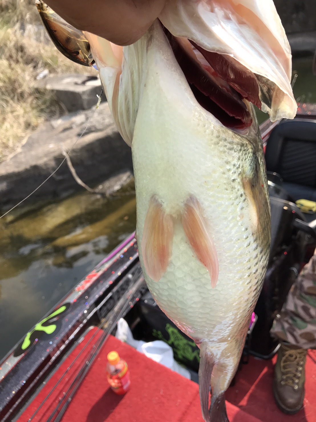 昨日、釣れた水深2メートルのロックエリアにHU-70をキャストしてみると3投目でバイト!