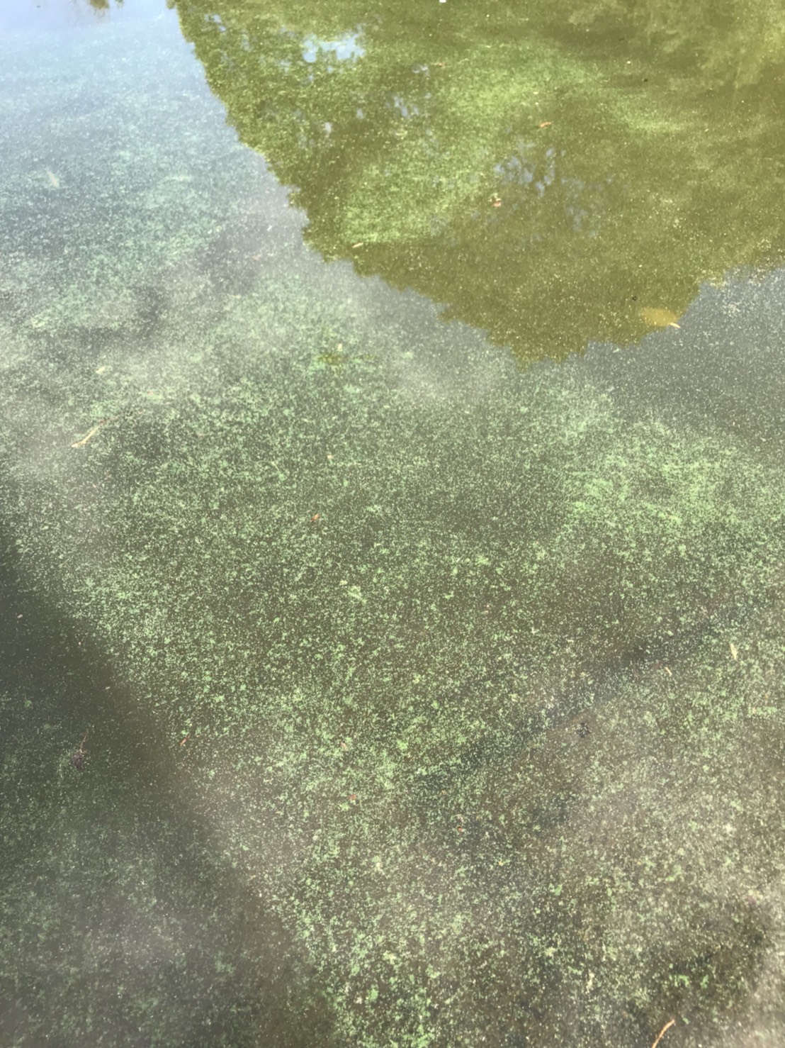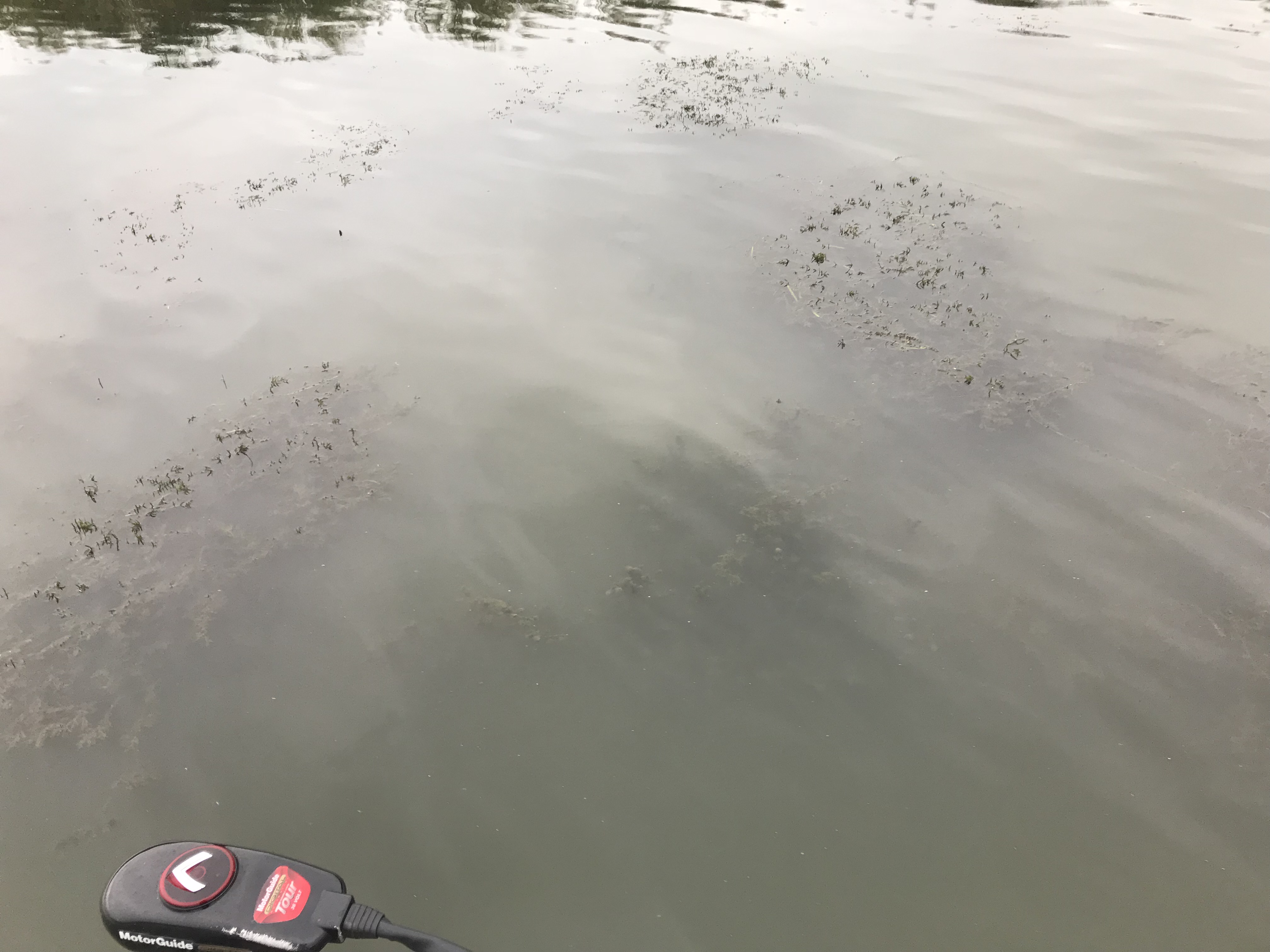 水深のある岸際のウィードの隙間に、