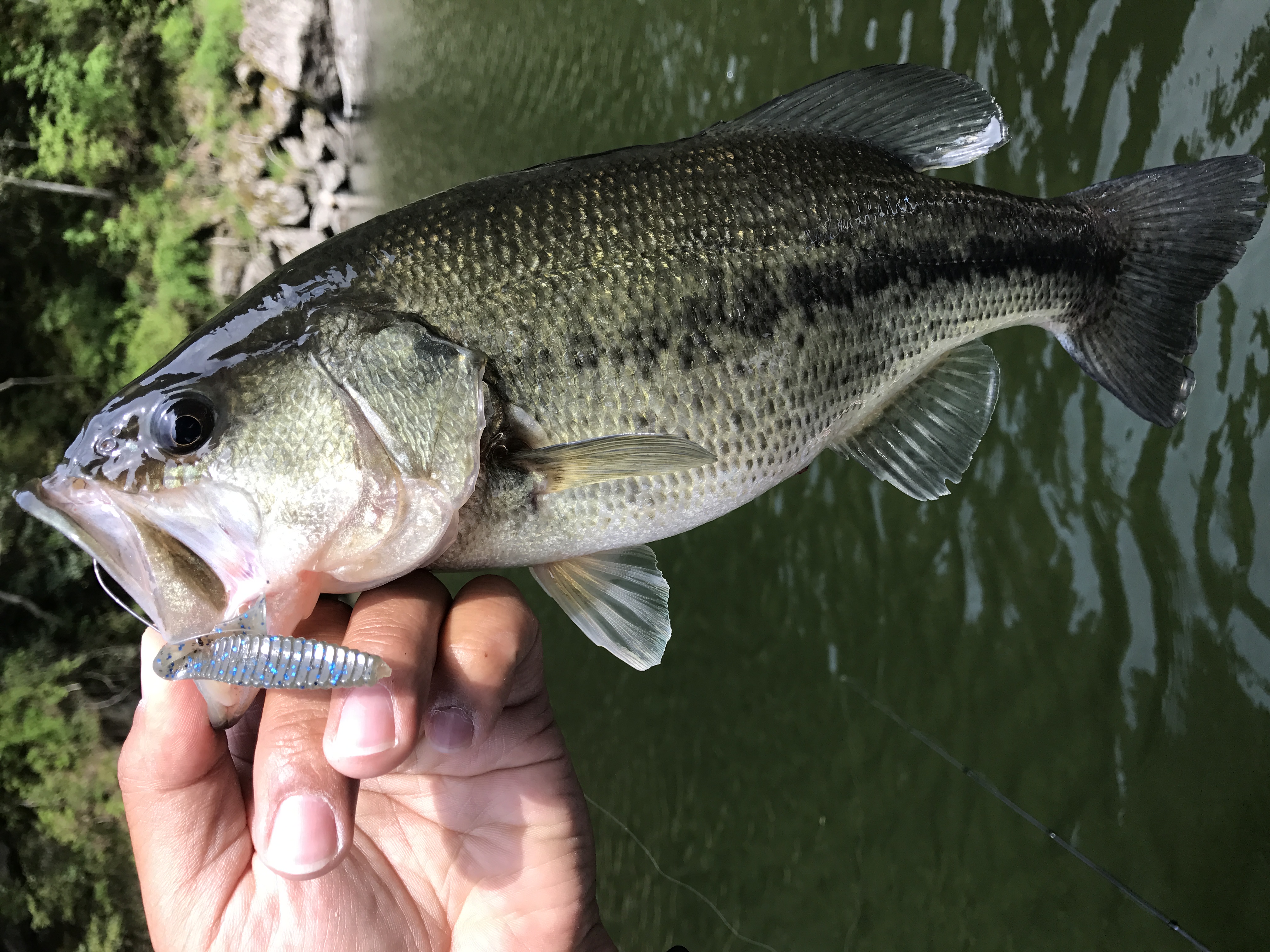 野池でナイスフィッシュをスタッガーオリジナル2.5インチダウンショットで釣られています^^