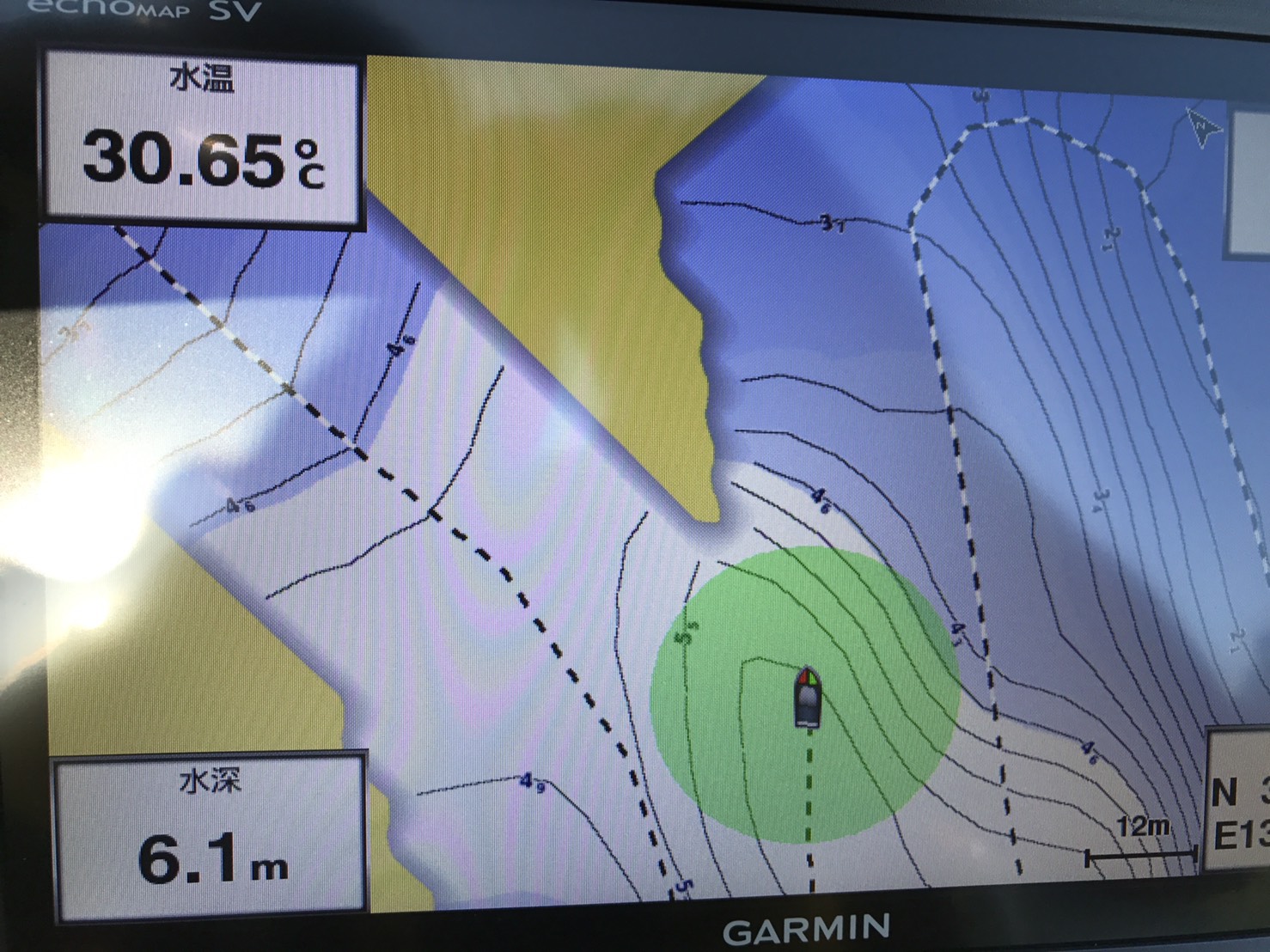 今回、導入したGAMINの魚探は等深線が作れるモデルを選んだので等深線機能のチェックから始めました♪