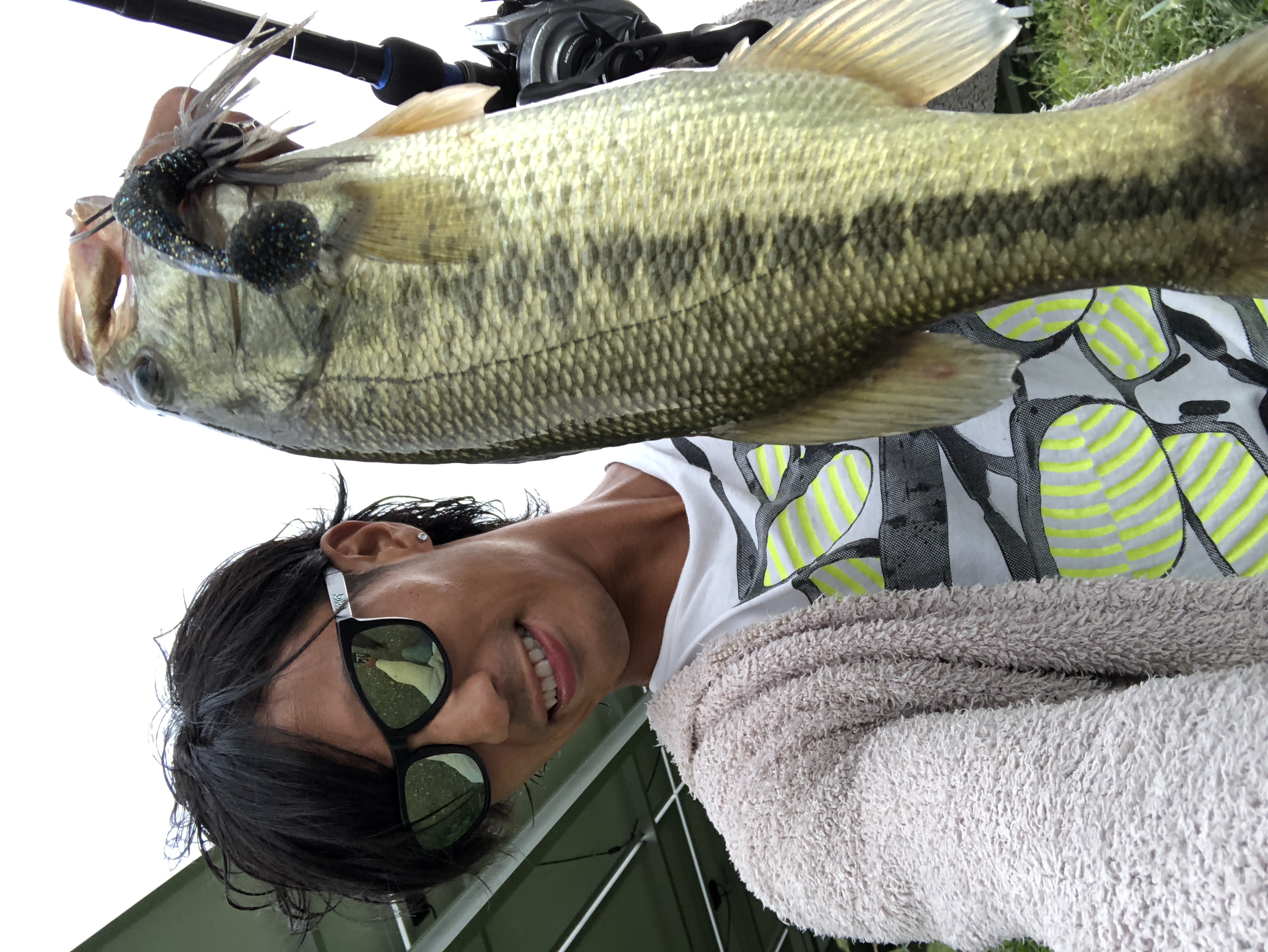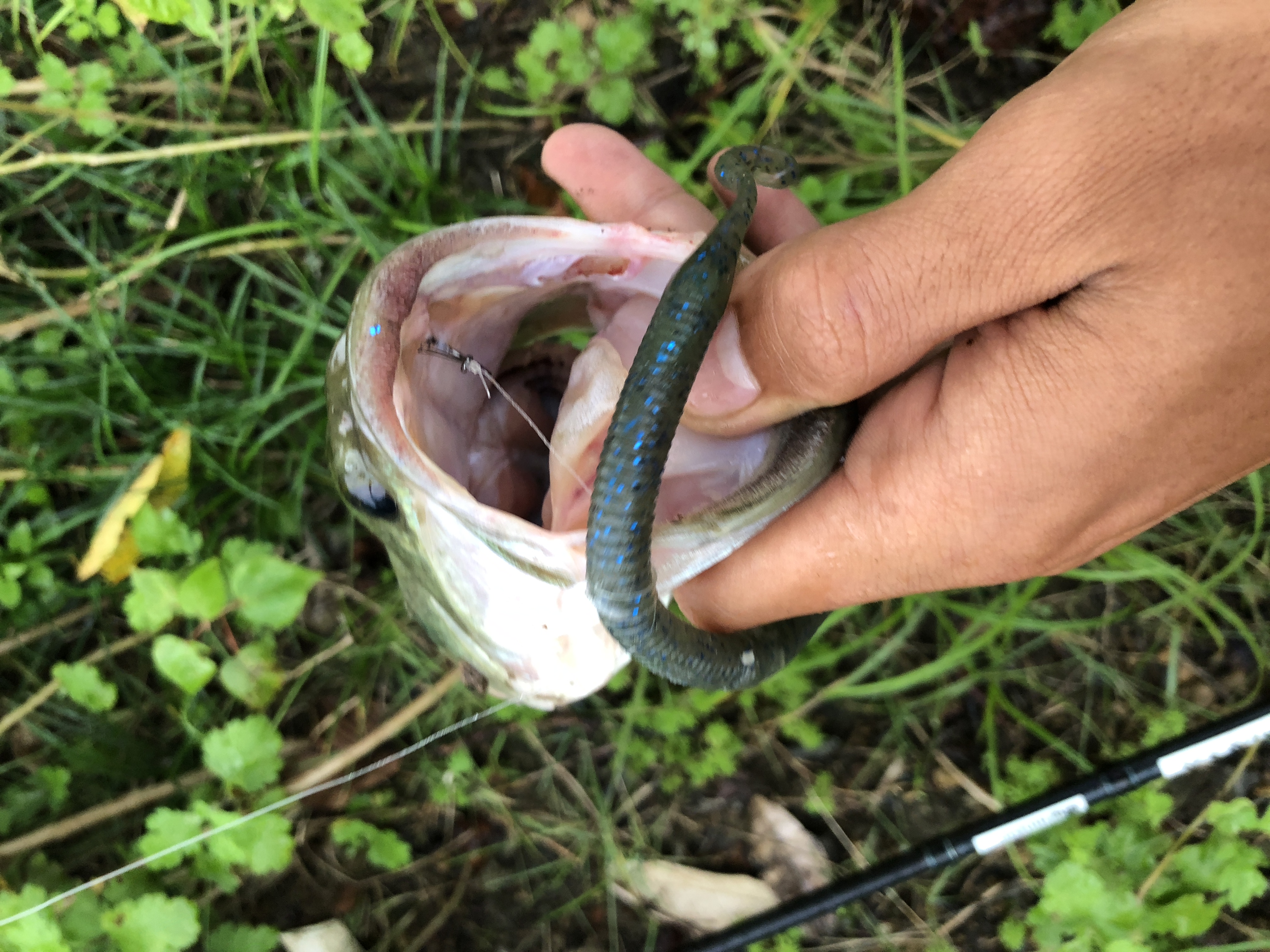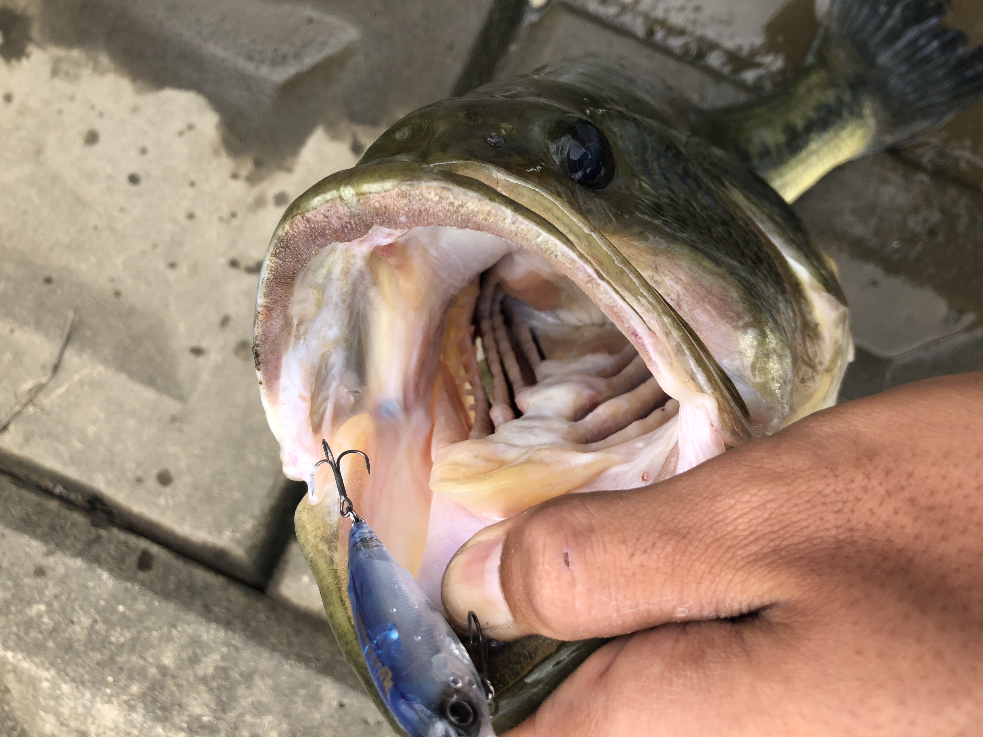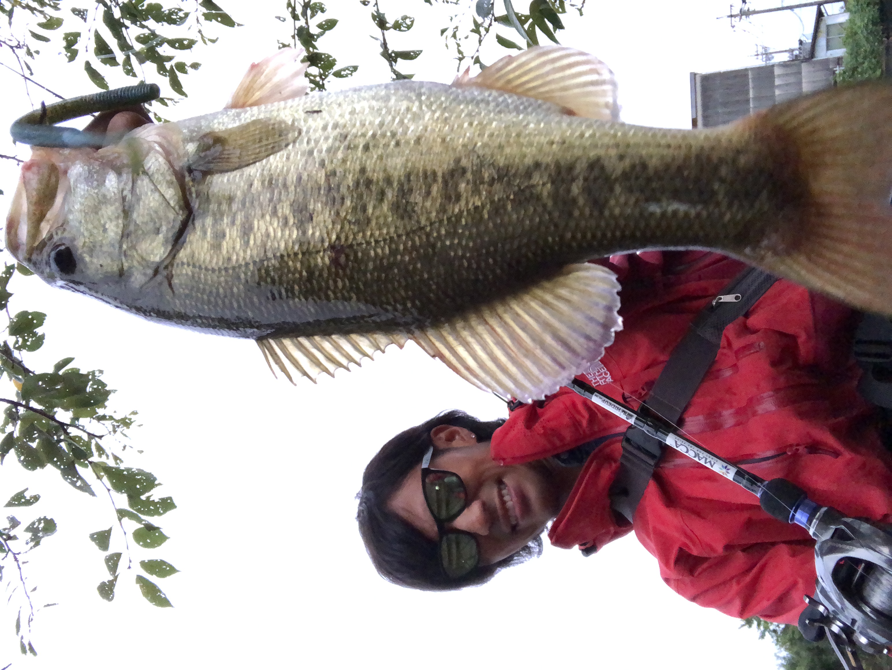 口もデカい!!拳が余裕で入りそうな勢いです。因みにルアーはギル型のノーシンカーリグだそうな!!