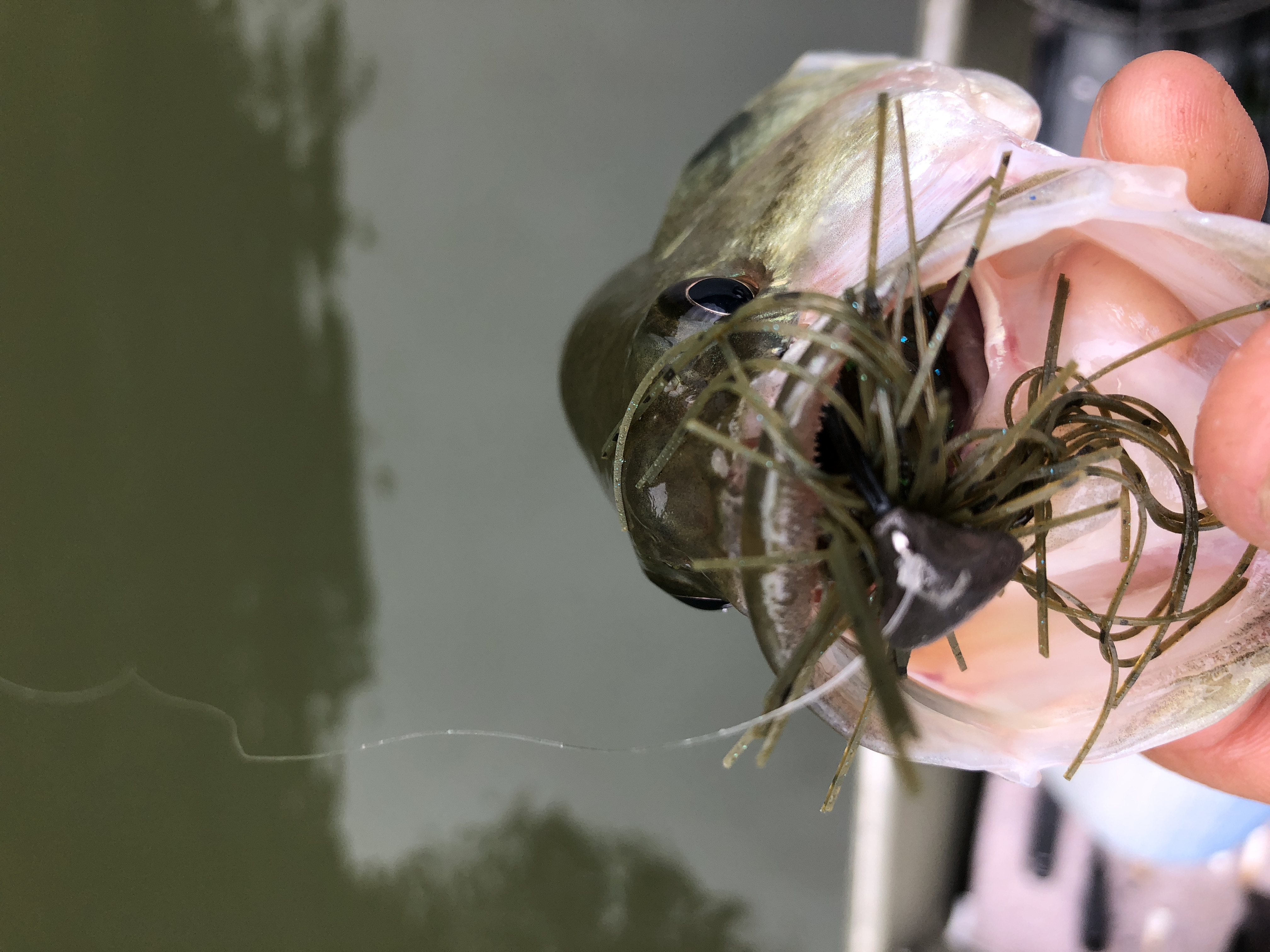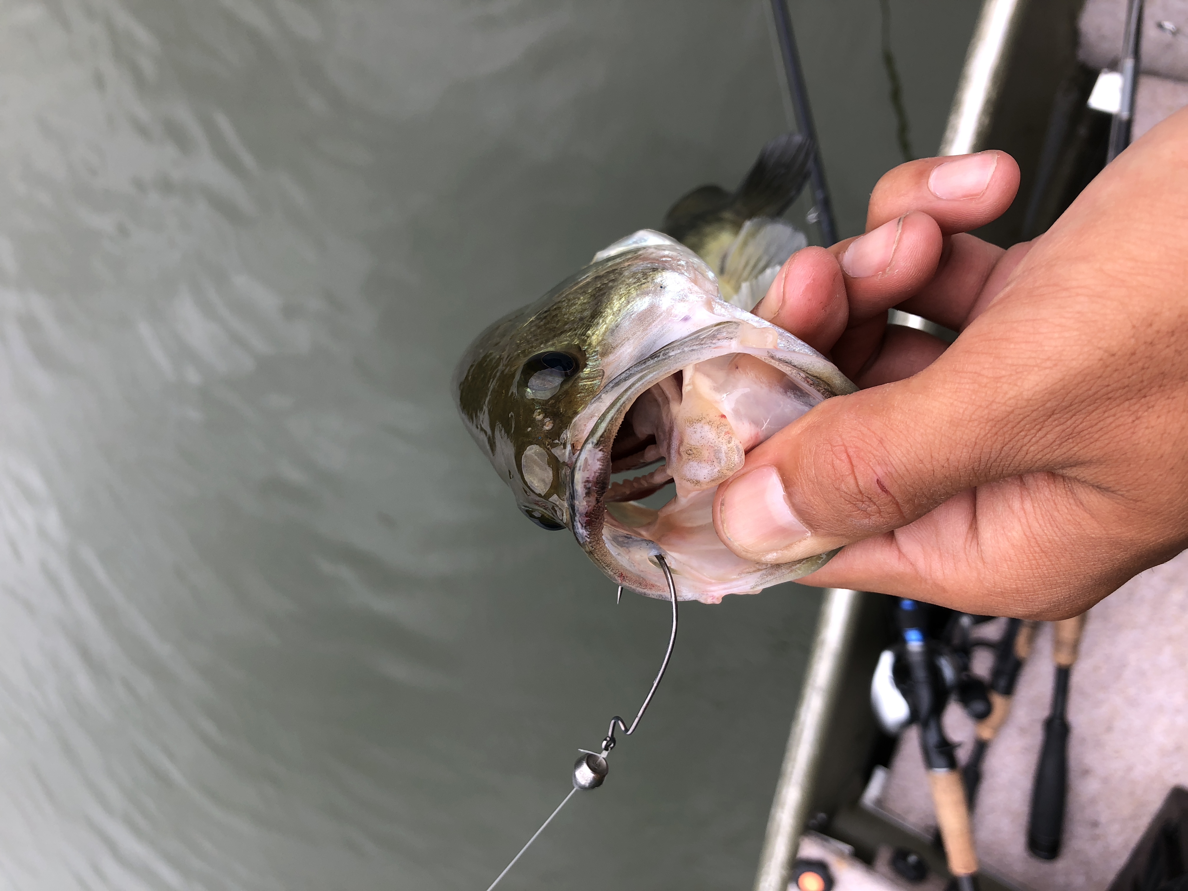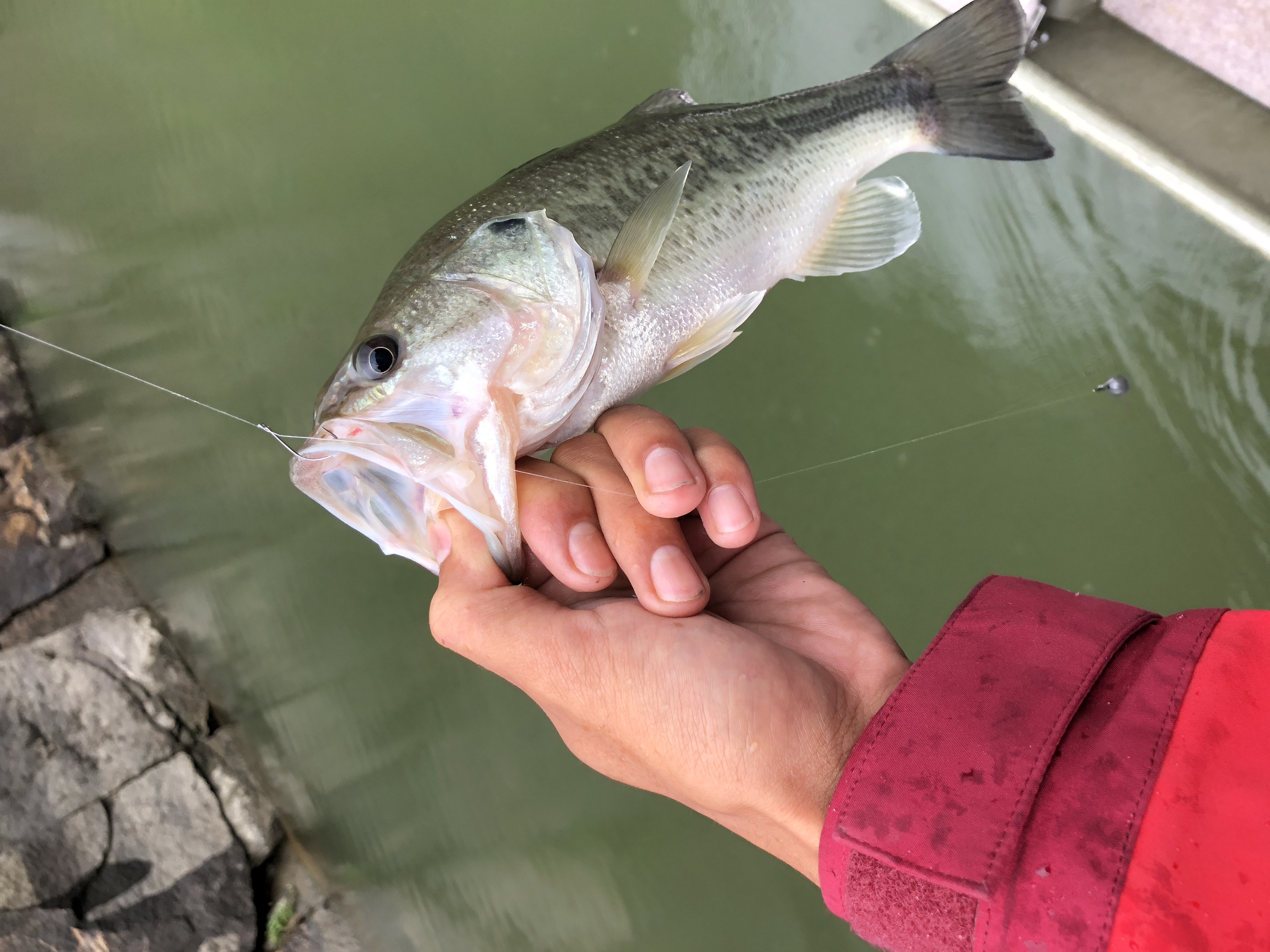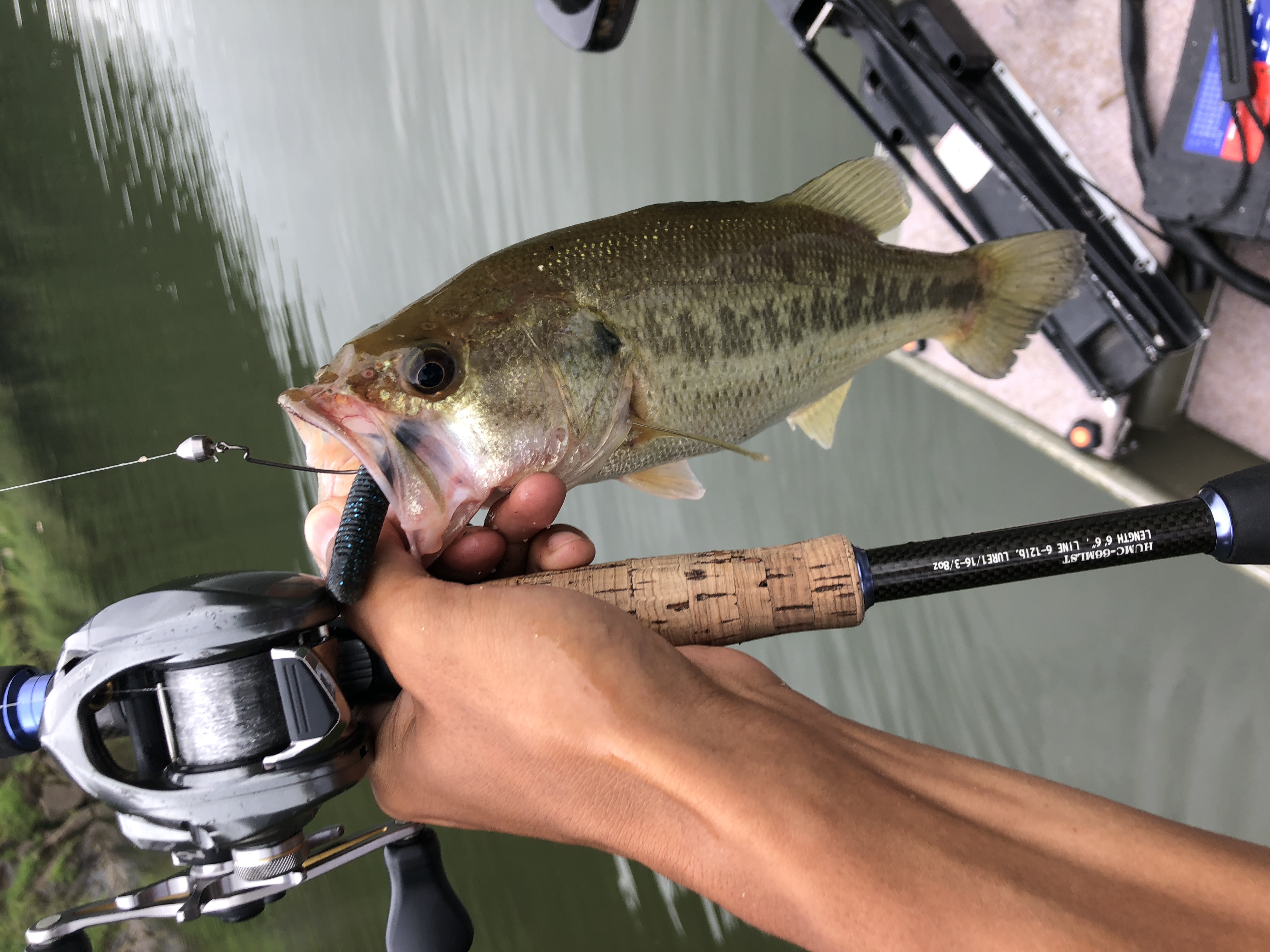 口もデカい!!拳が余裕で入りそうな勢いです。因みにルアーはギル型のノーシンカーリグだそうな!!