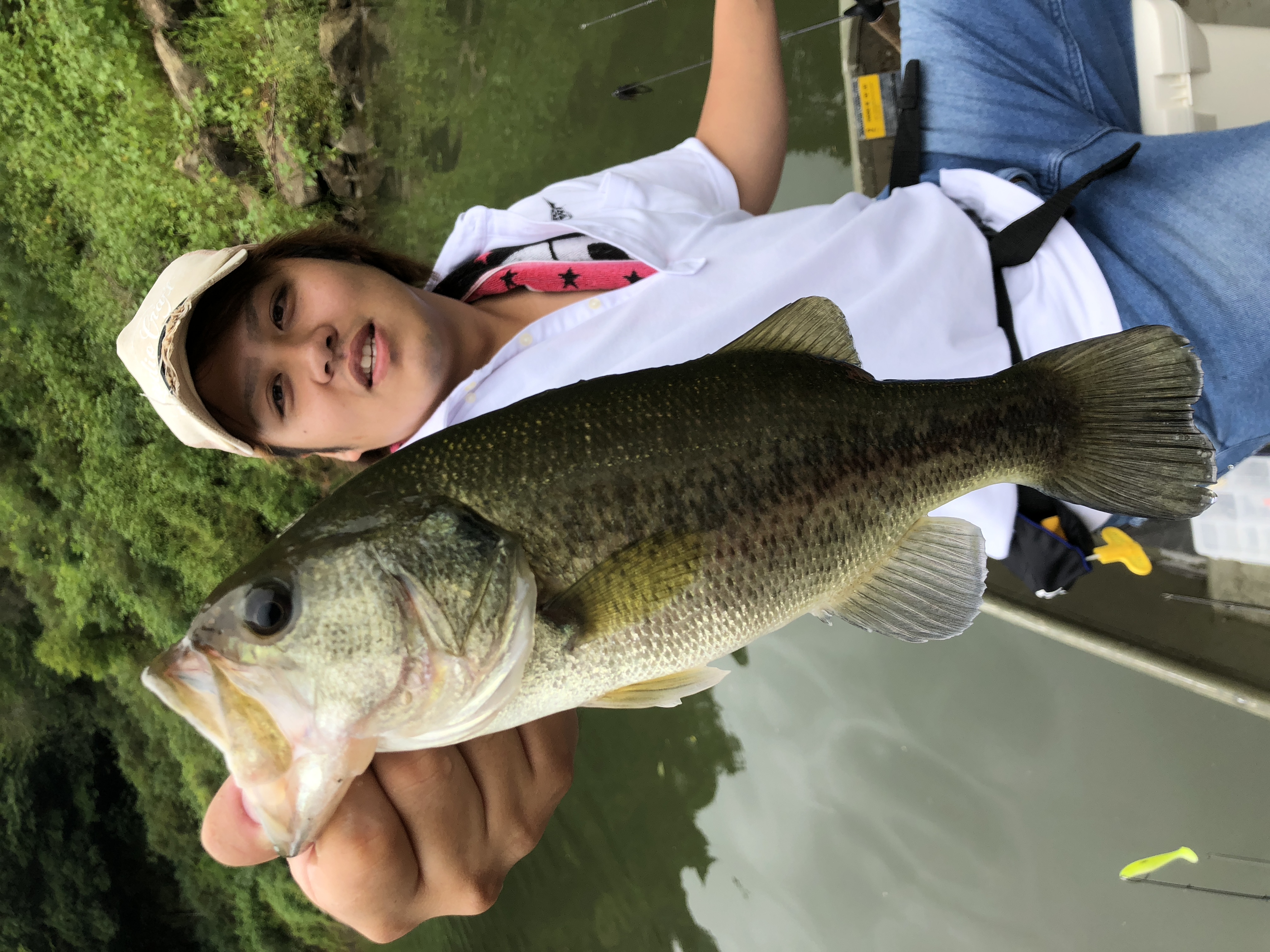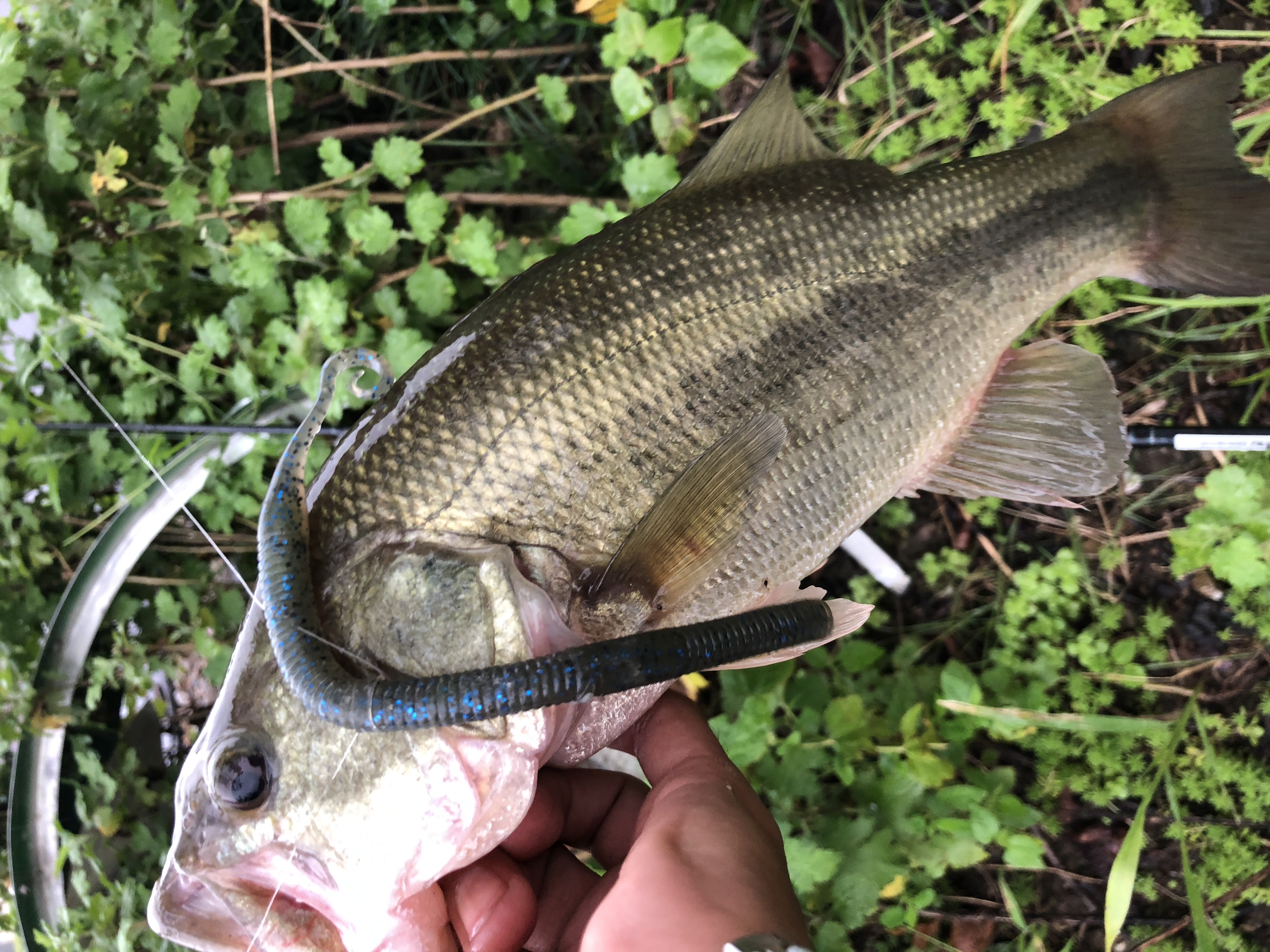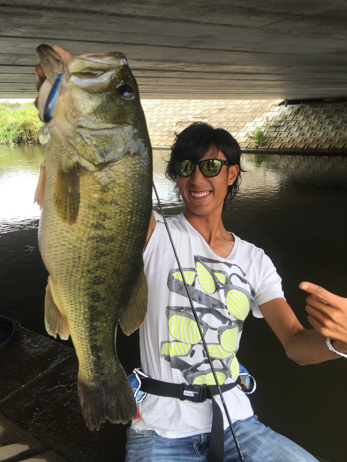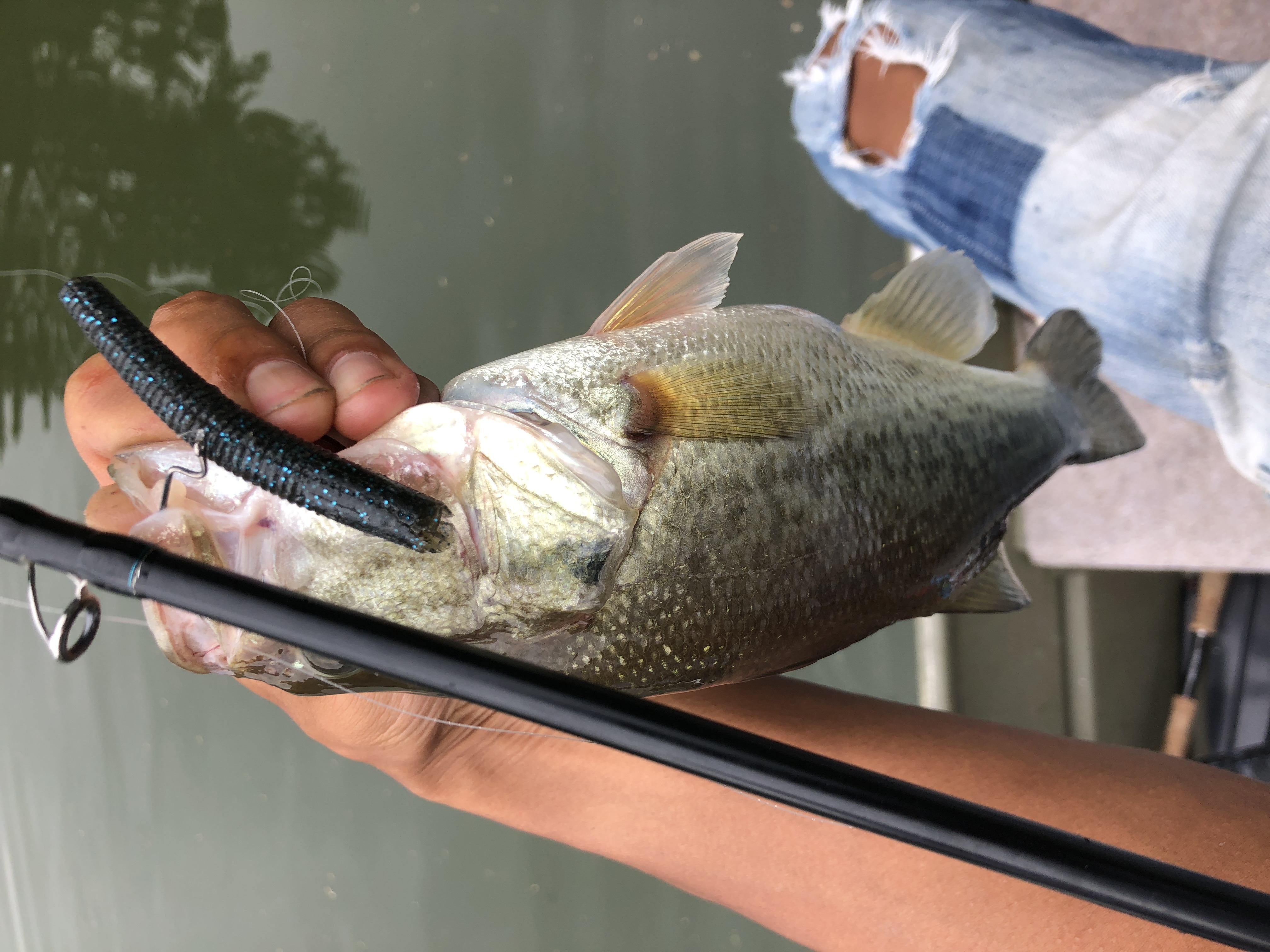 口もデカい!!拳が余裕で入りそうな勢いです。因みにルアーはギル型のノーシンカーリグだそうな!!