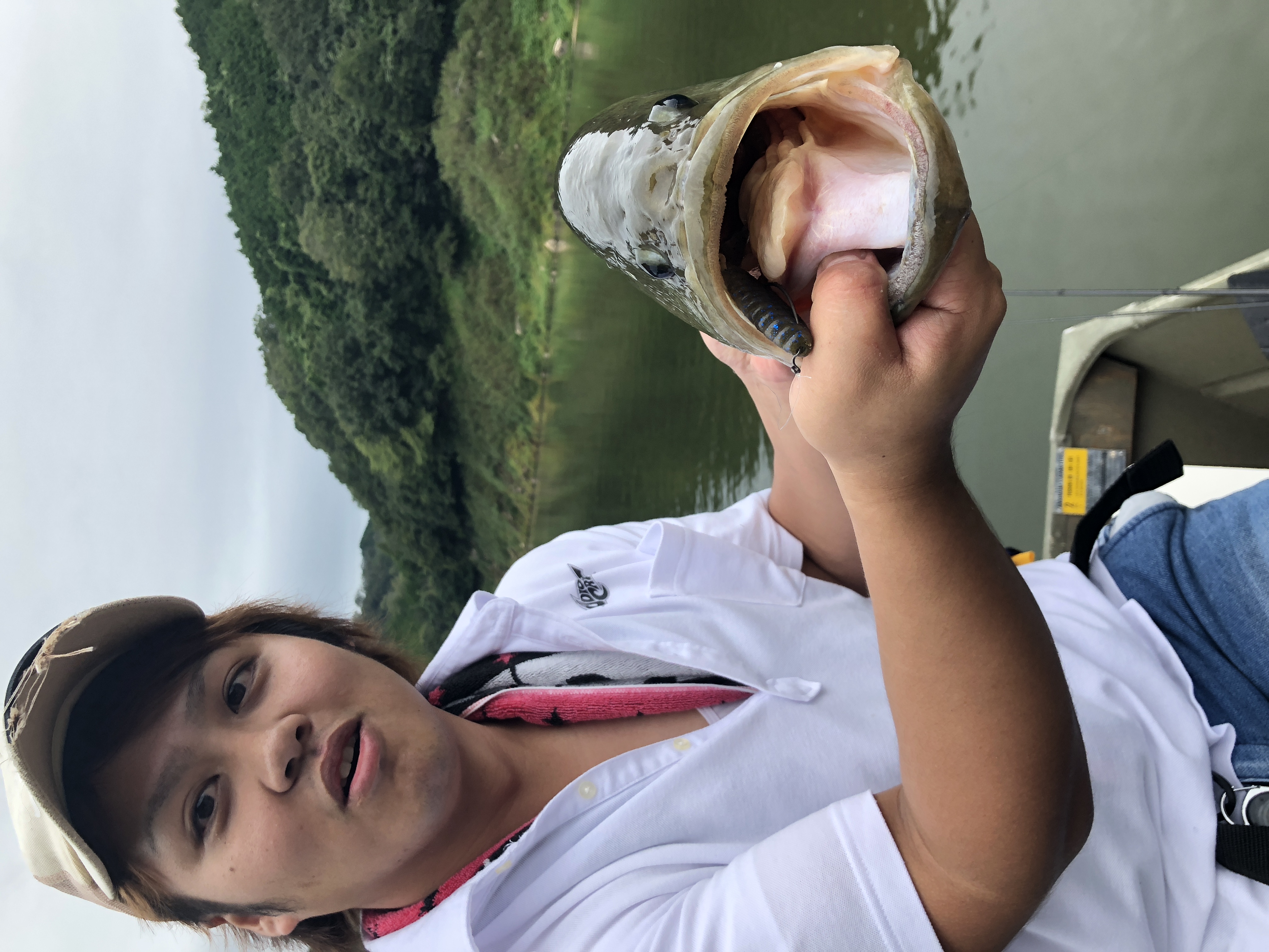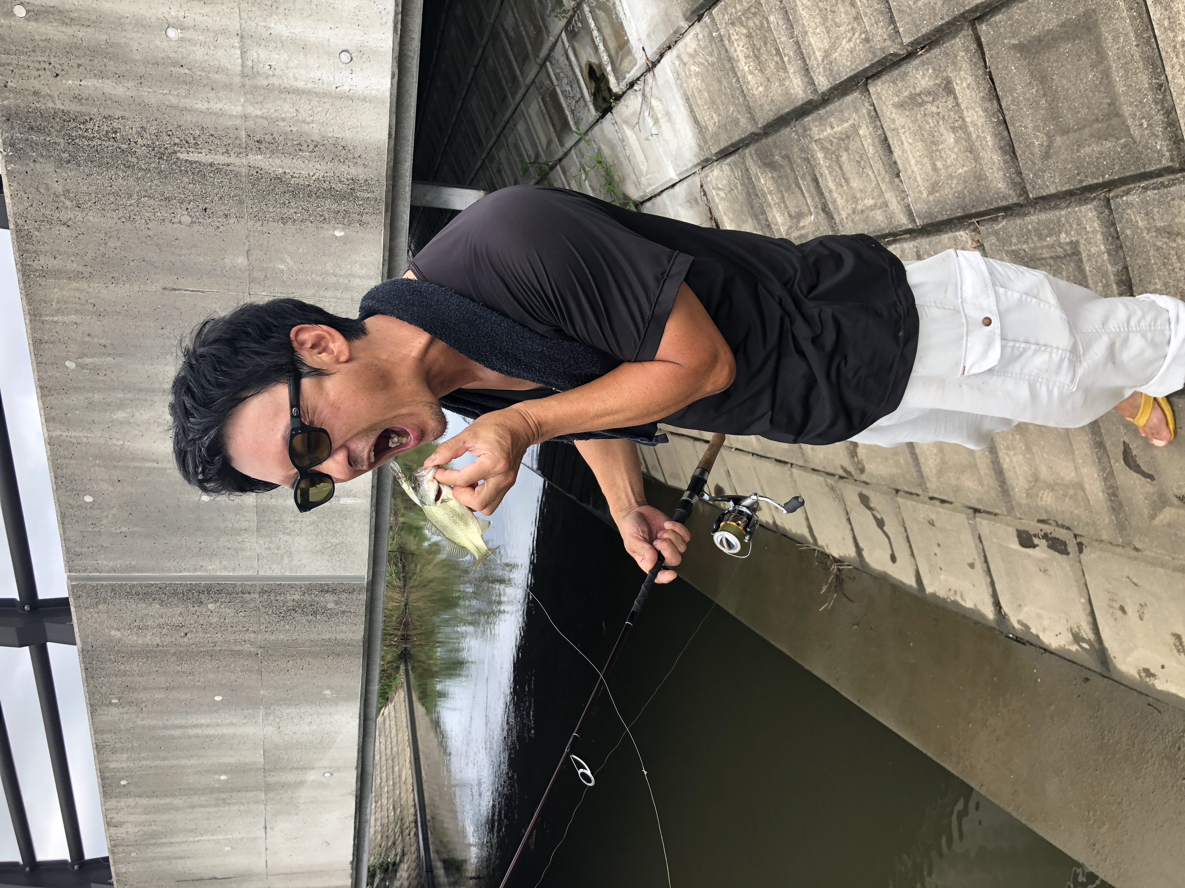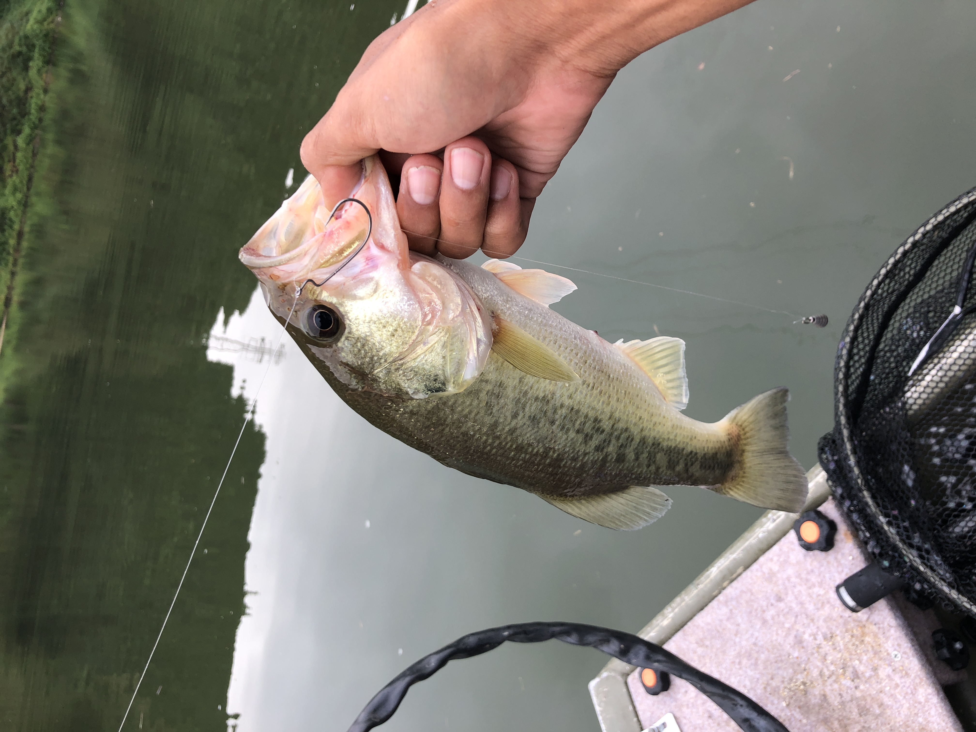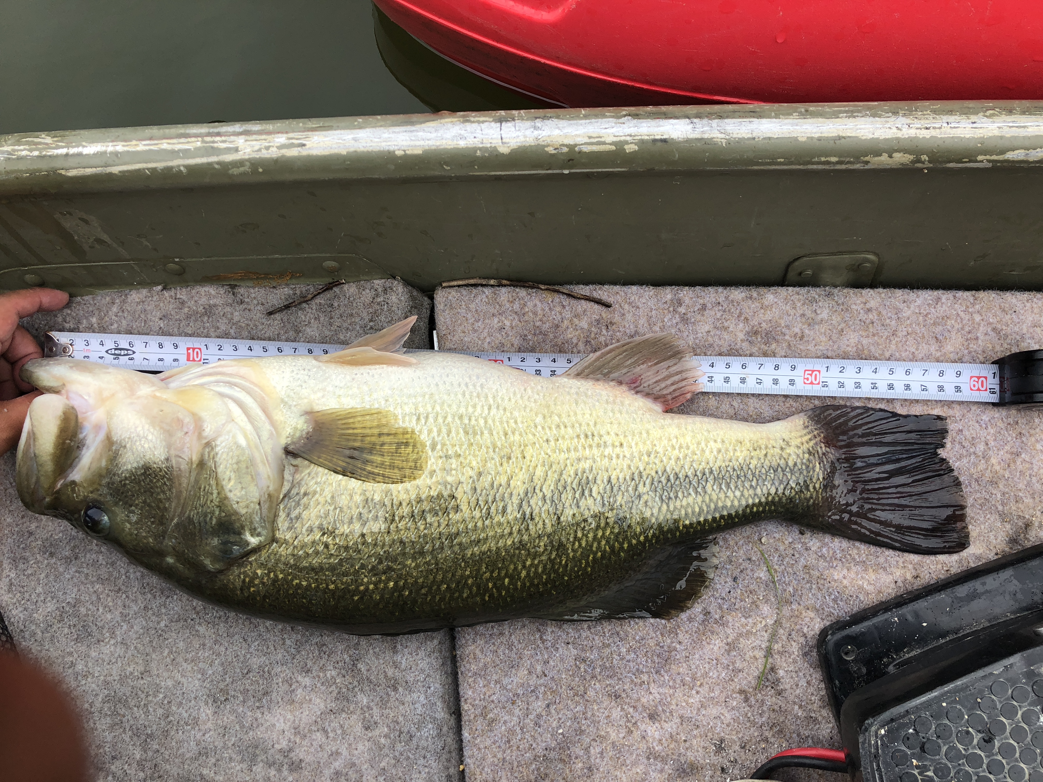 口もデカい!!拳が余裕で入りそうな勢いです。因みにルアーはギル型のノーシンカーリグだそうな!!