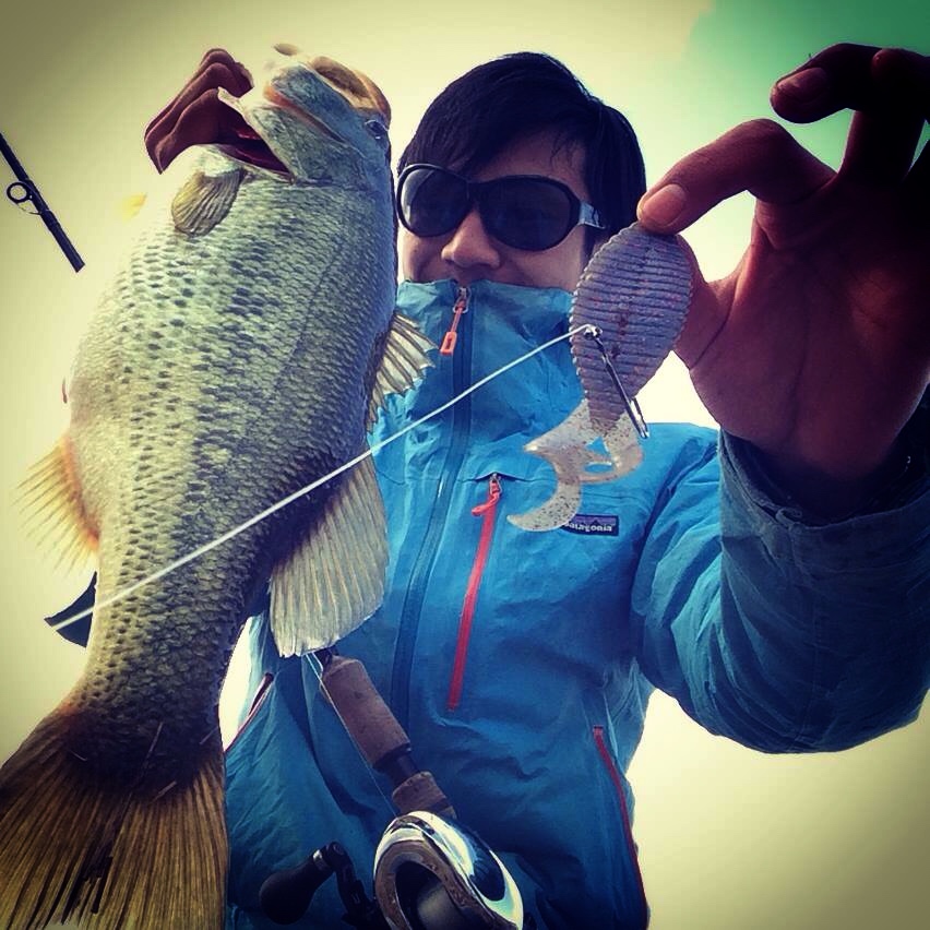 見慣れたまだ茶褐色なアシ際にスタッガーワイドツインテール4インチを同じ攻め方で狙って行きます。