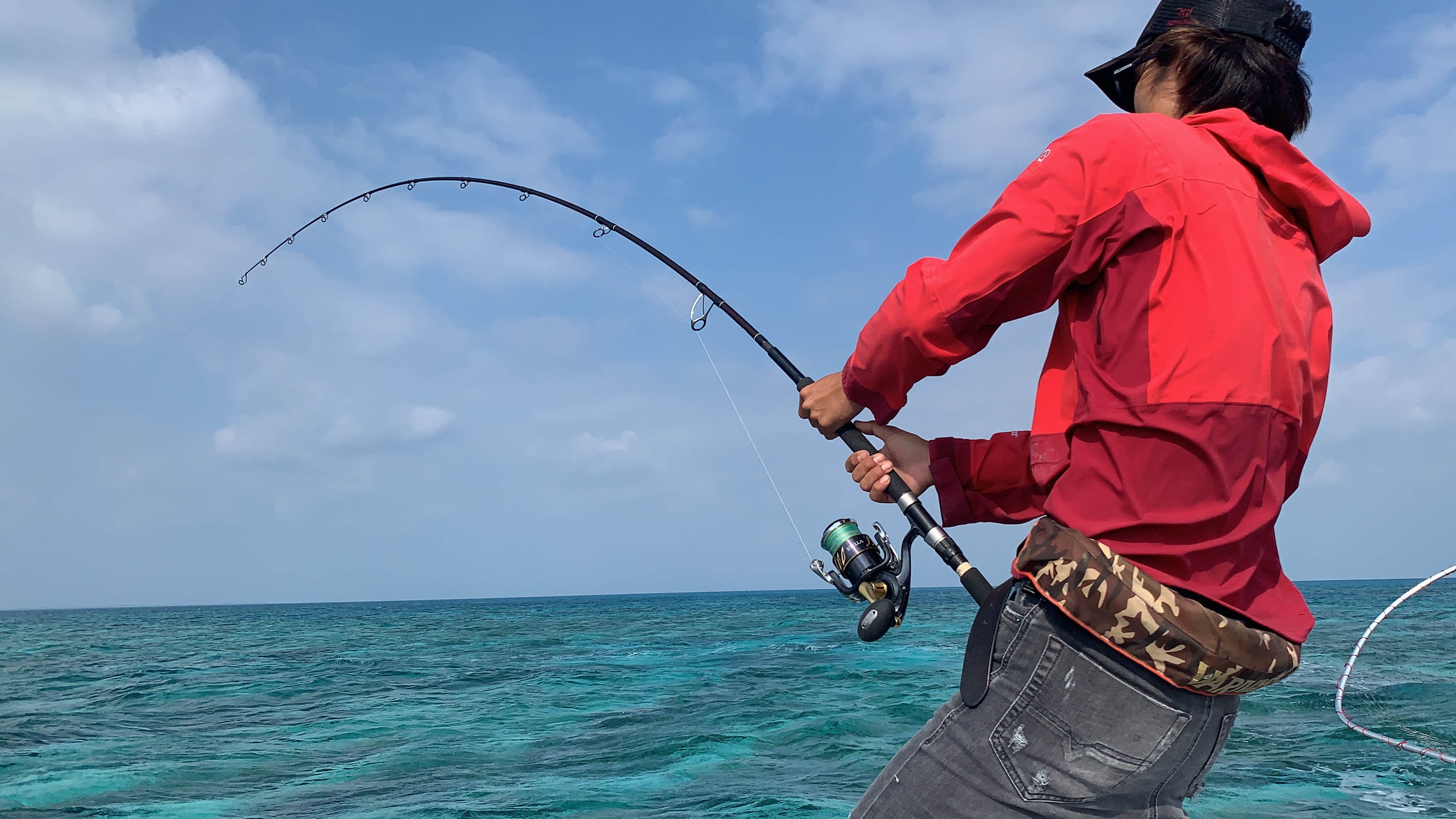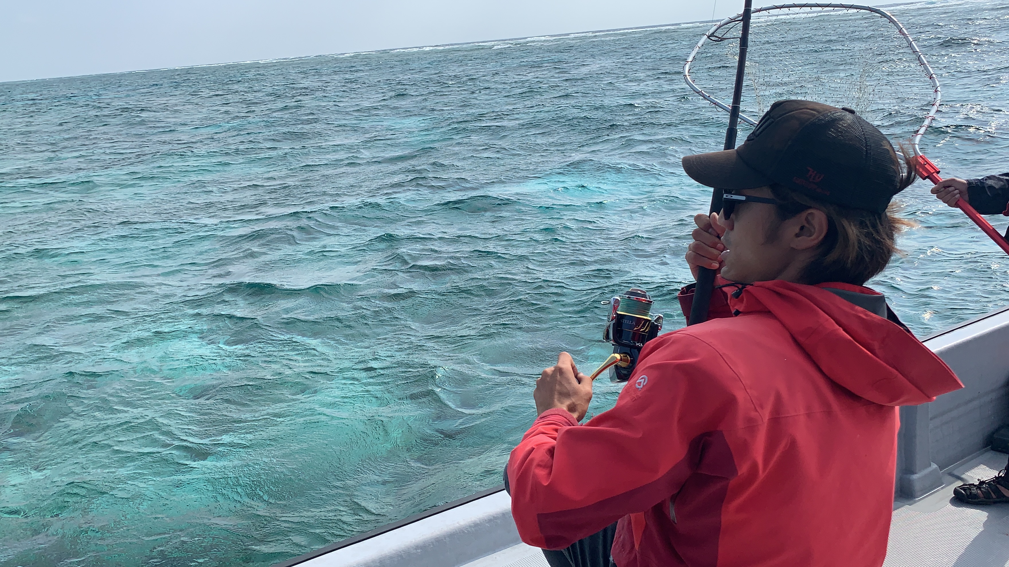 GT狙いでもタマン狙いでもなかなか本命こずだった乃村さんガイドの常連ゲスト、桑名さん、、2日目も終わりに差し掛かろうとしたタイミングで船長から再度GT狙いの提案が。