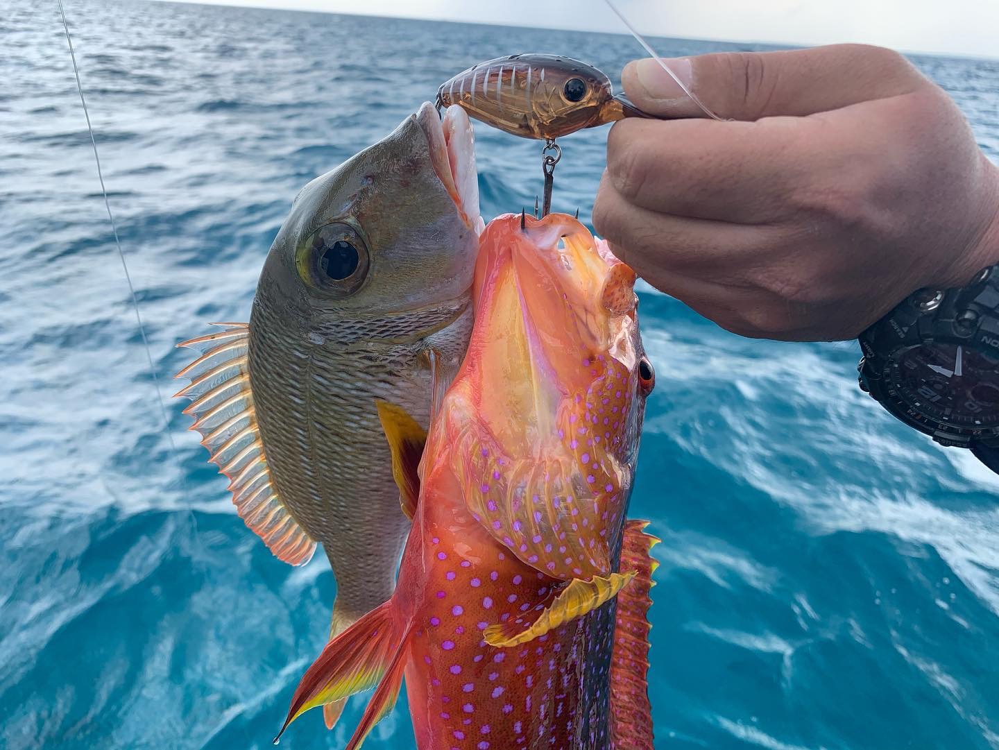 乃村さんの28キロGTと自分のアカマダラハタ、そして、今回のGT22キロを同じもので釣り上げましたが、ボディ、アイ共に無事‼️
