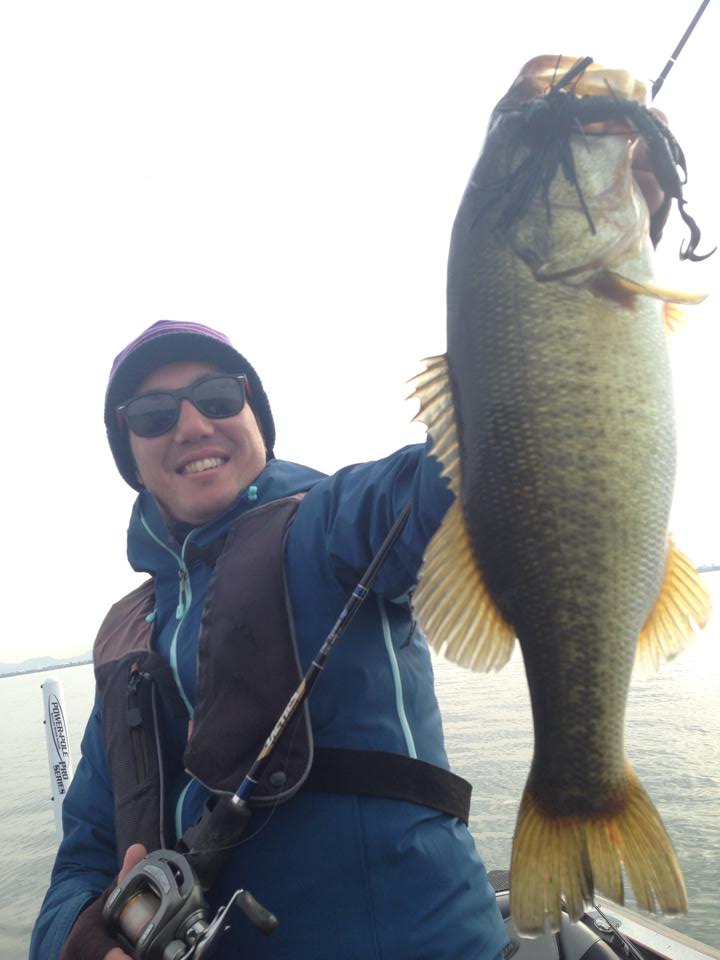 ジグの引っ掛かりでウィードの有無を確認しながら、「無い」方をしっかり狙っていっての一本!!