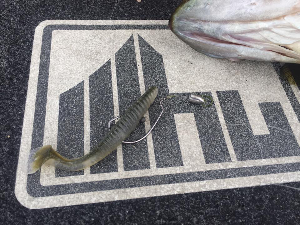 スタッガーオリジナル4インチ+5gシンカーをマキマキマキマキ。