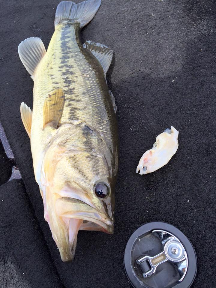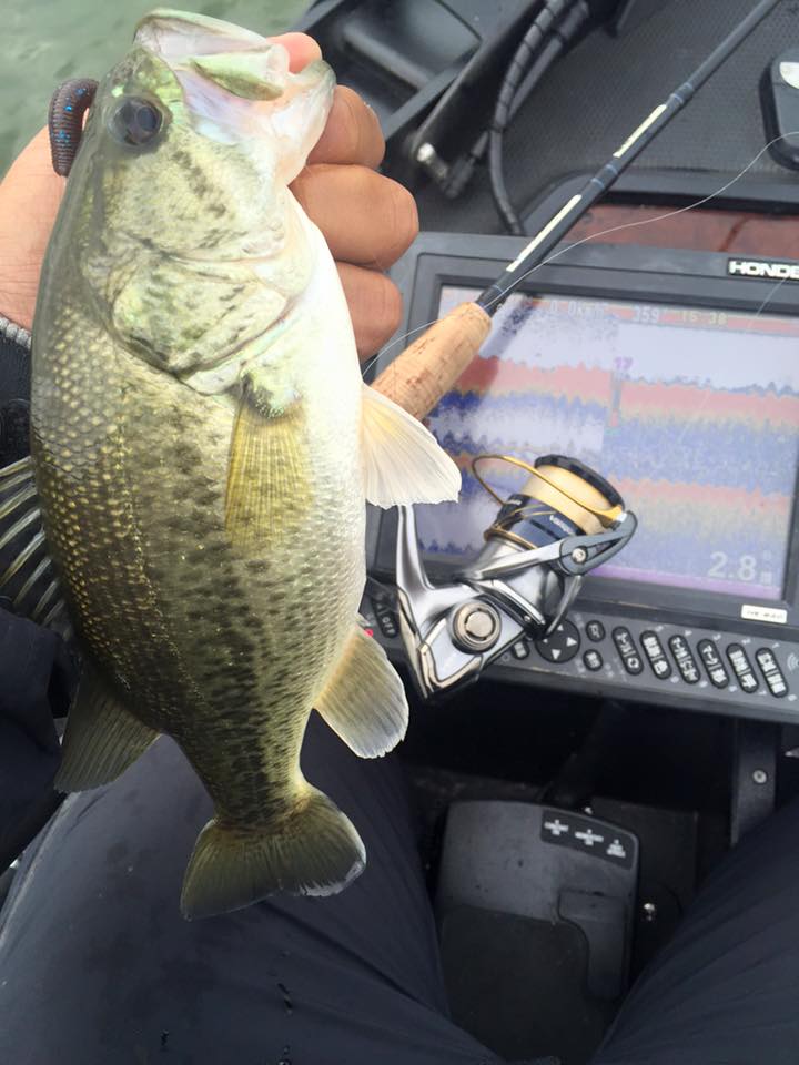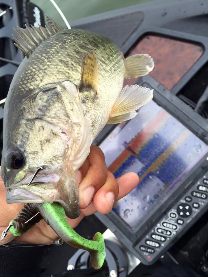基本は3.5ⅿ~4ⅿのウィードフラット。そのライン上にある藻抜けにヘビダンを投入したり、魚が浮いたら巻いてみたり。