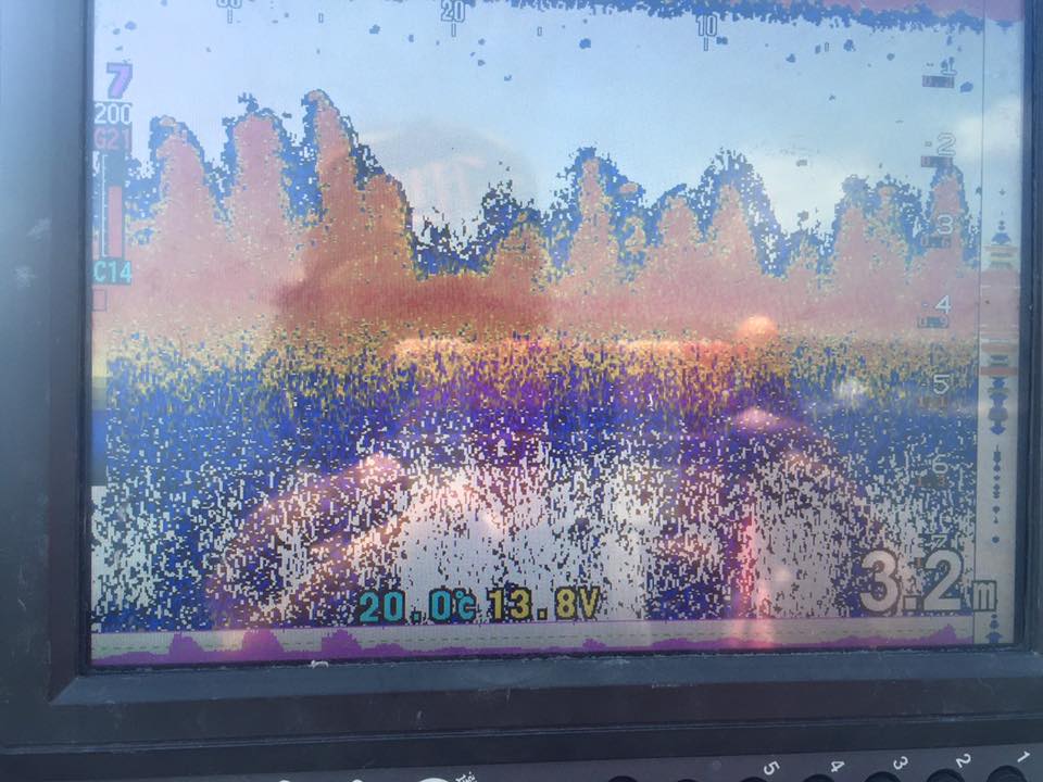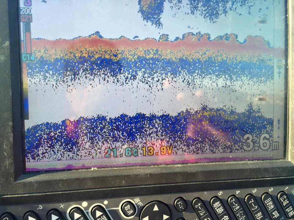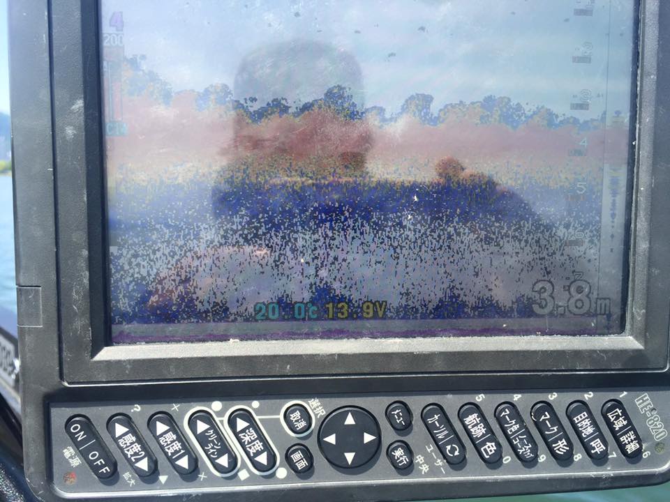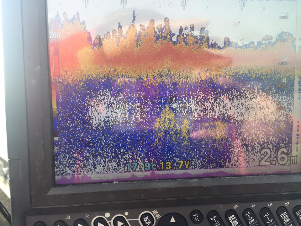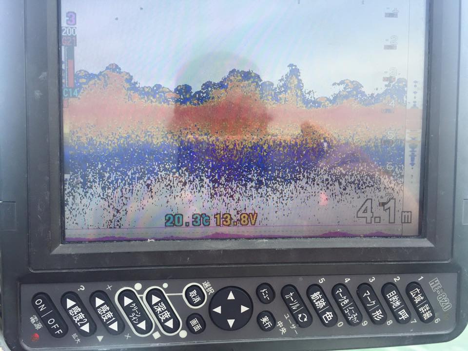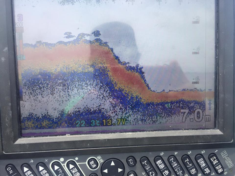 魚探で、2mより浅くて、エビモのある硬いハンプを探しながら、見つけたらマーカー入れてじっくりと。