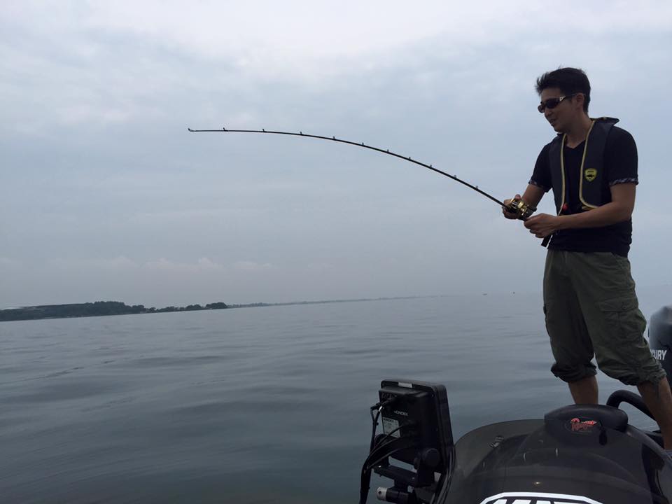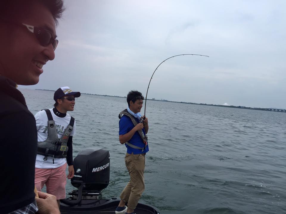 むしろ、PEを巻いたスピニングはかなり飛び、実際梅塚君がボートの中で一番飛ばしていたので、むしろPE巻いたスピニングで投げる方が良いのでは。