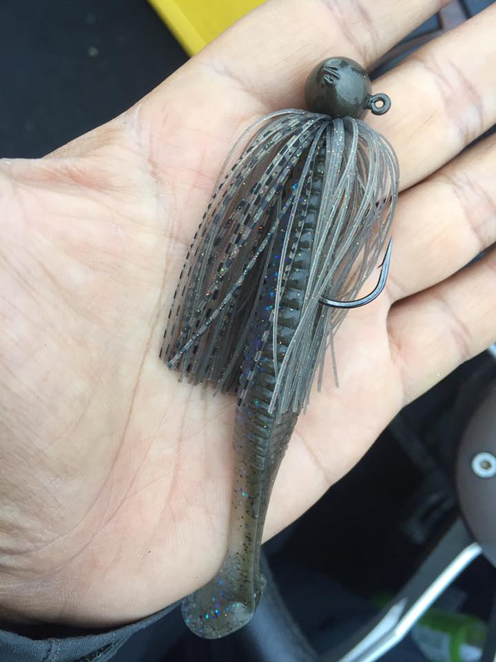 今回は5gで、使い方はフットボールジグと同じようにラインを張ったり緩めたりしがらトントントントンゆすりながら手前に引いてきたり、ずる引いたり。