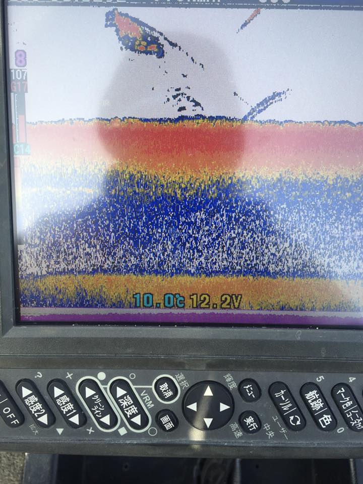 場所を探しながら、、寒くなった感覚から、再び朝一の下物4mの穴でスタ3フットボールジグ展開!!!