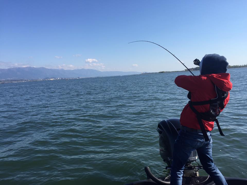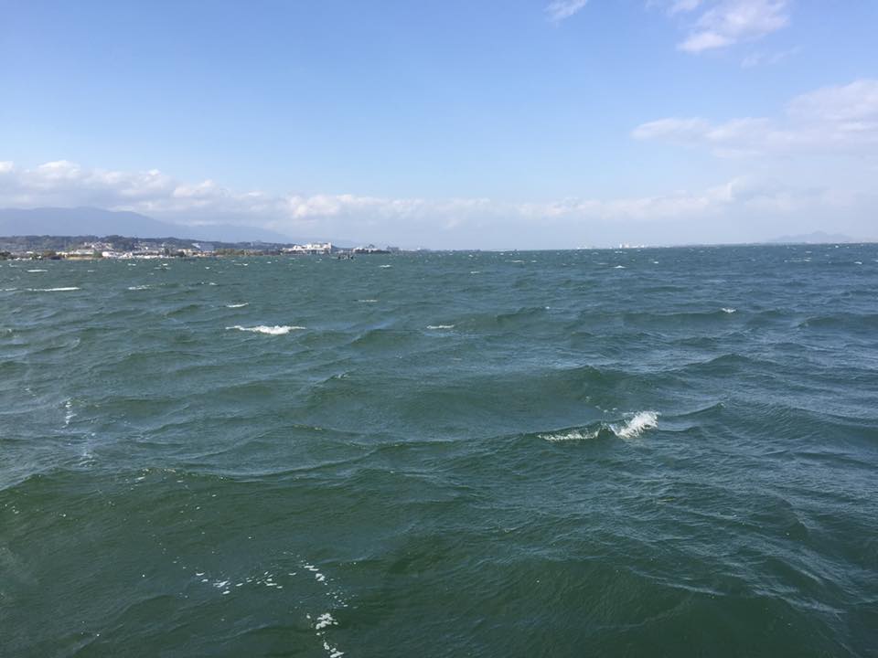 23日 日曜日は、たまらんばいガイドゲストで最も若い二人組の宗田君と小田君を迎えて琵琶湖!