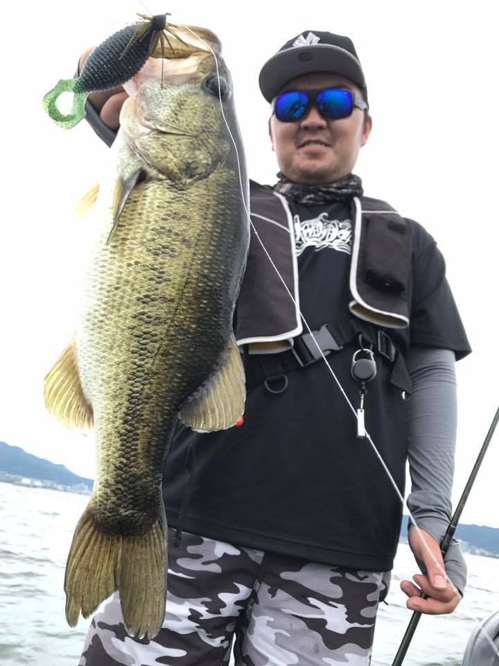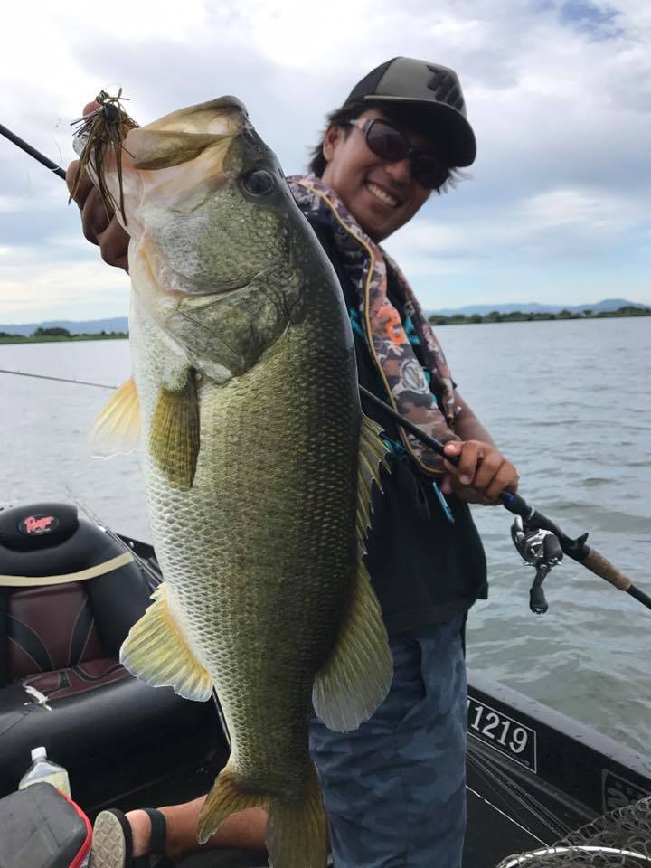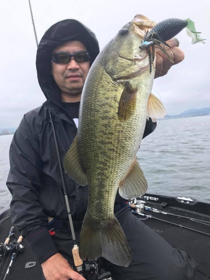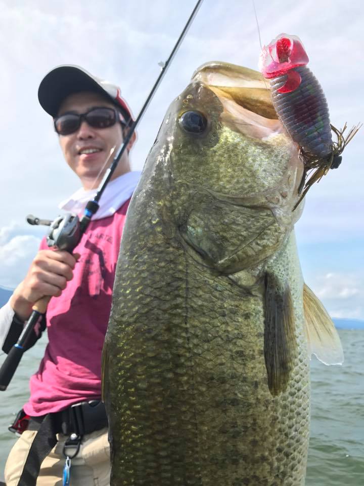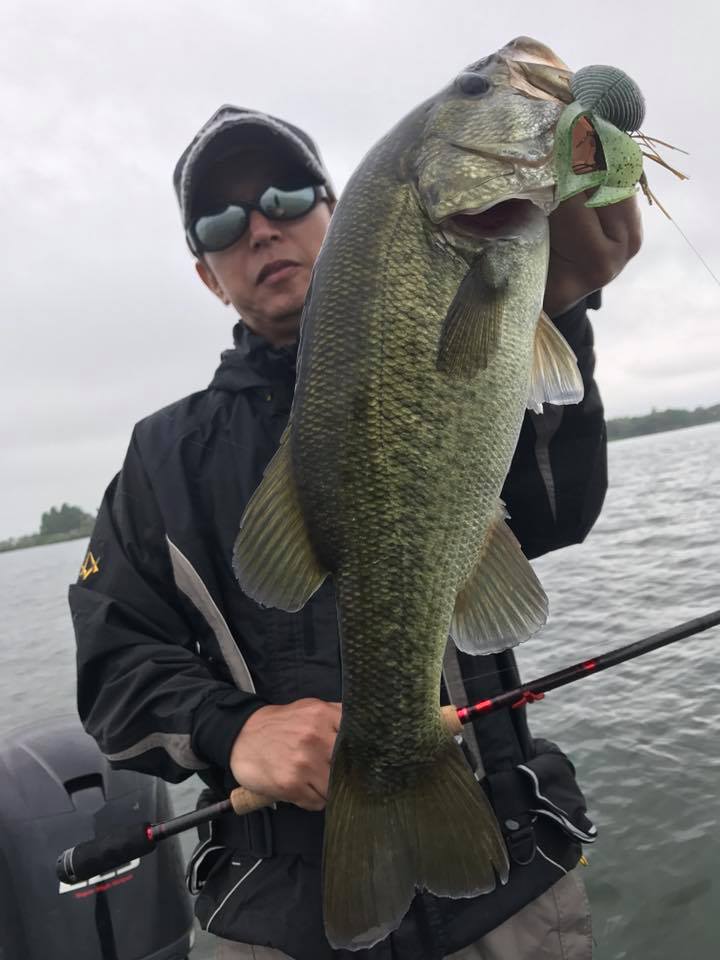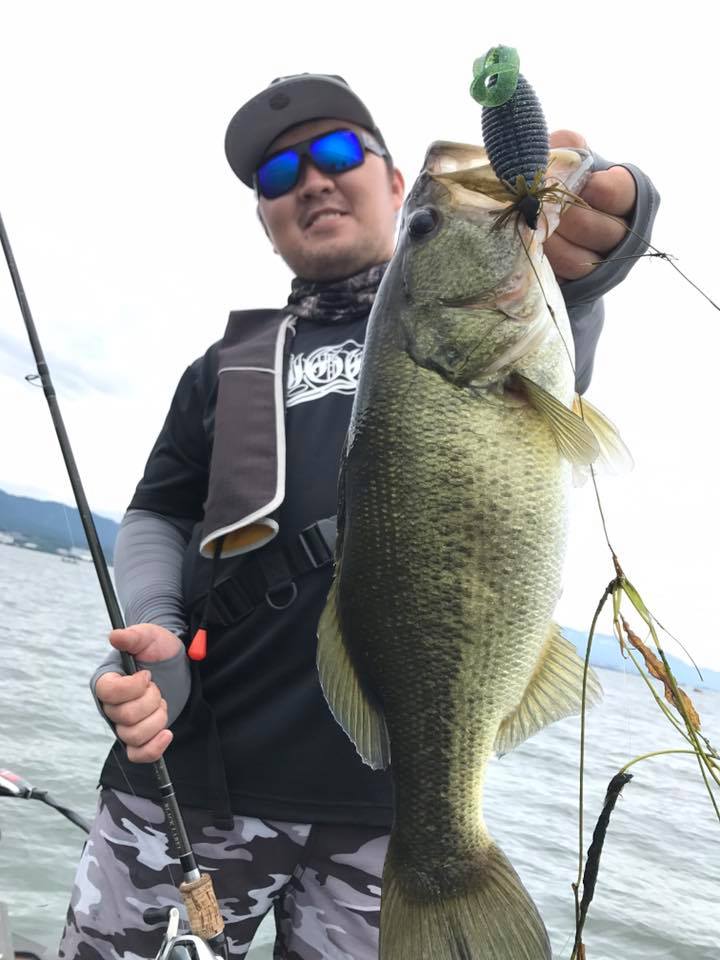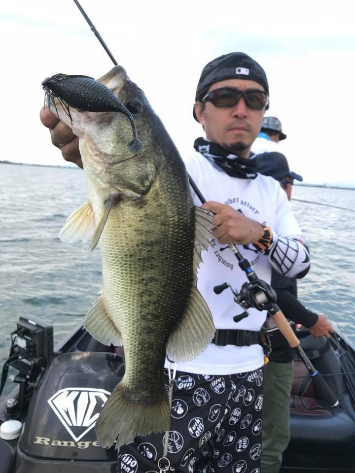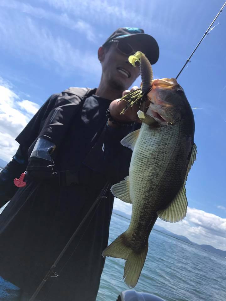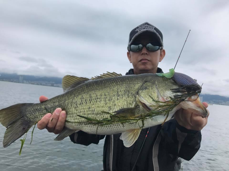 しかし朝一の時間はまだウィードの外をうろついている個体が多く、そのバスをワイド&ジグで仕留めにいきます!!