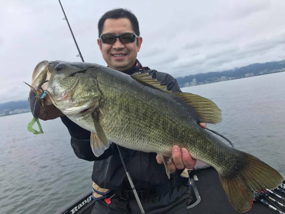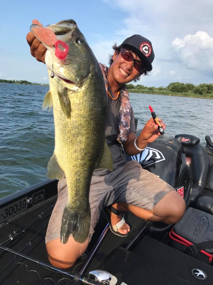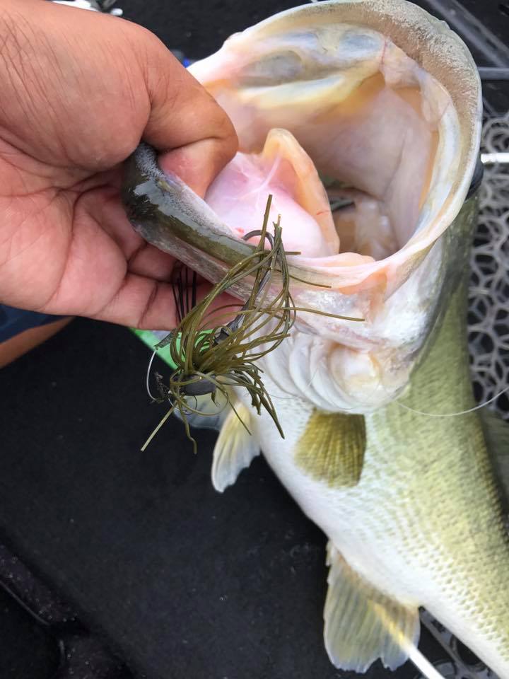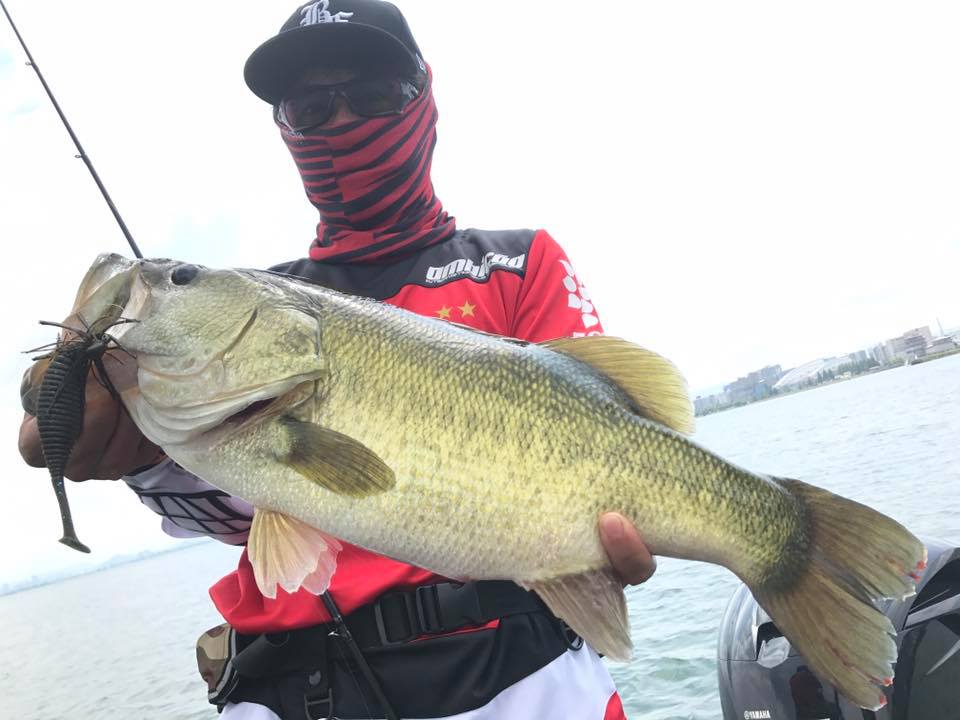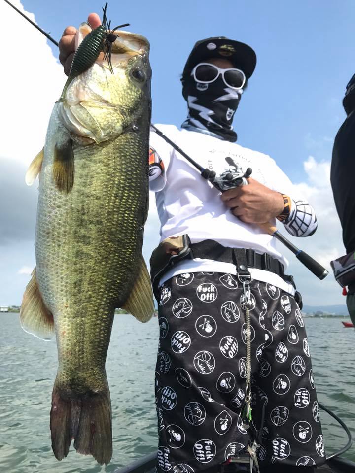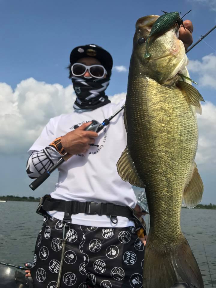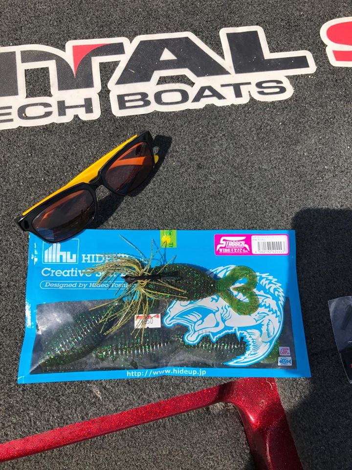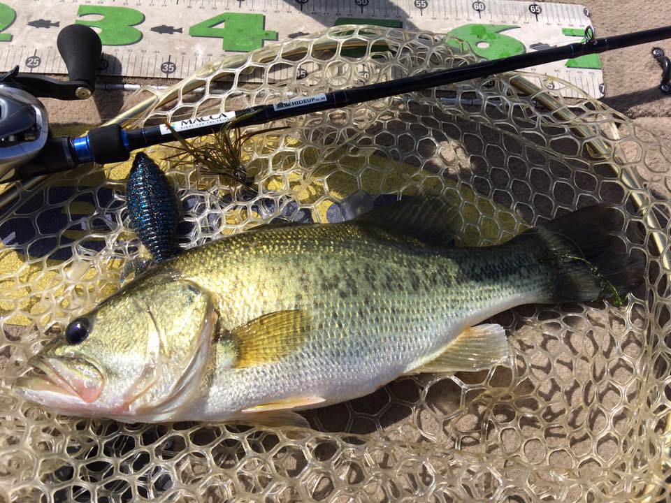 しかし朝一の時間はまだウィードの外をうろついている個体が多く、そのバスをワイド&ジグで仕留めにいきます!!
