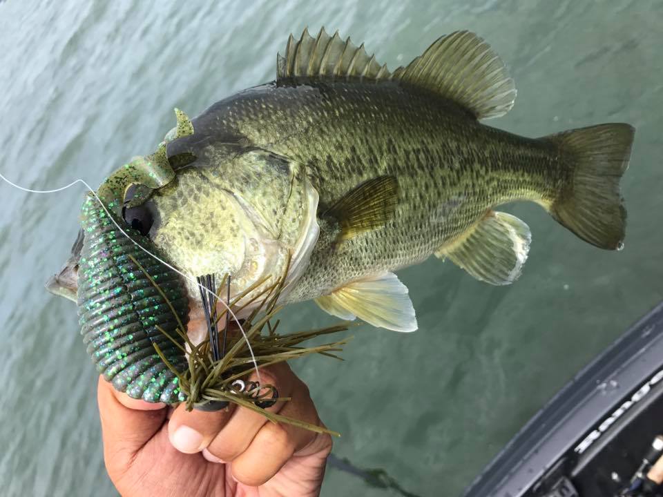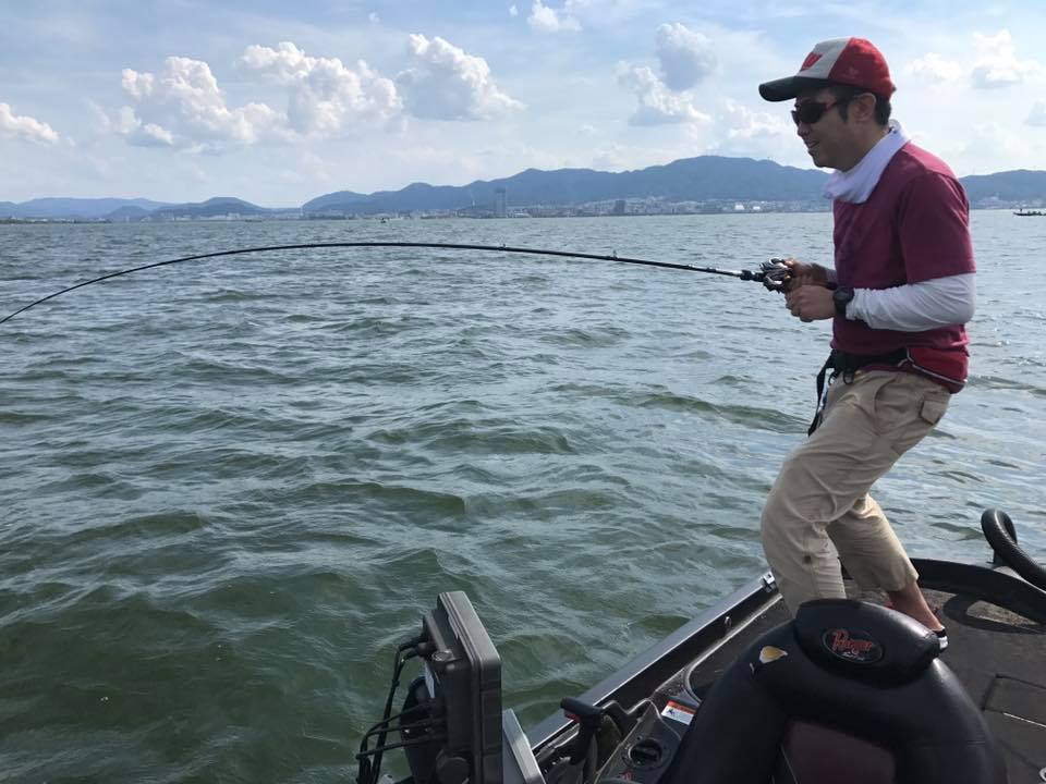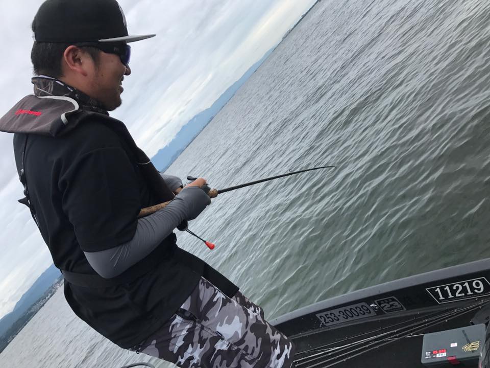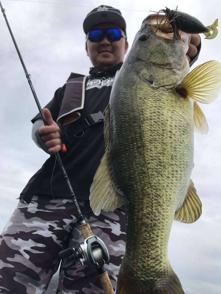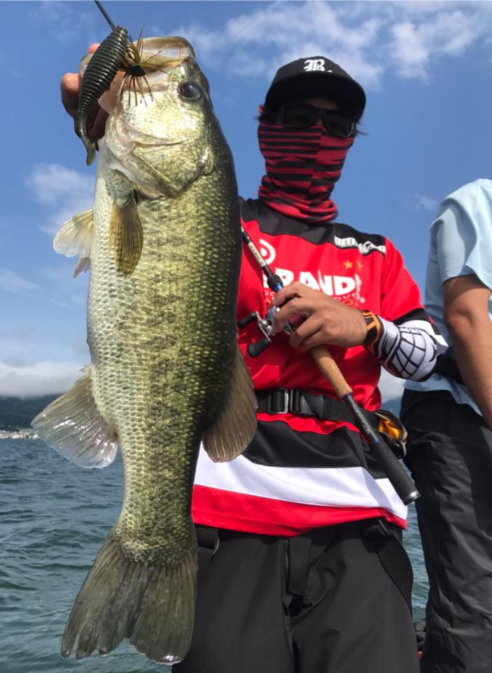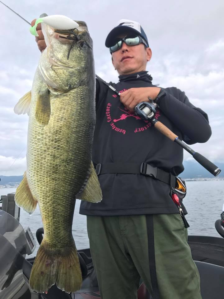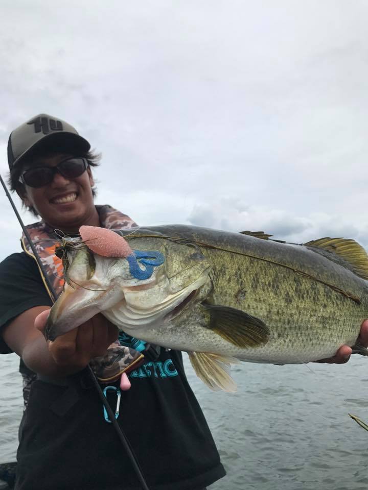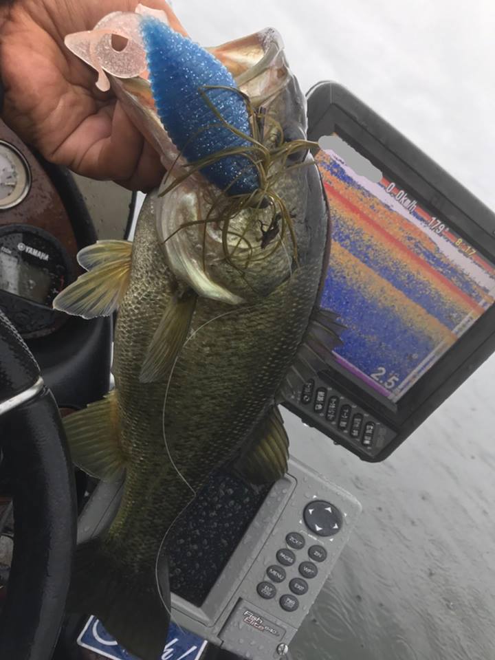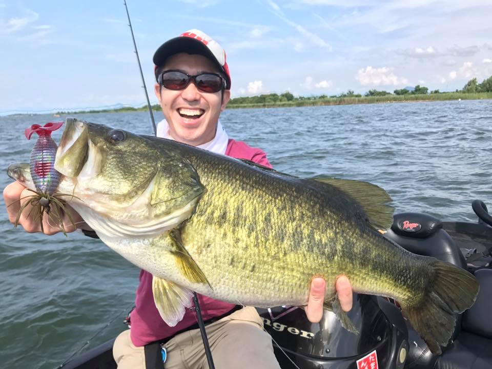 しかし朝一の時間はまだウィードの外をうろついている個体が多く、そのバスをワイド&ジグで仕留めにいきます!!